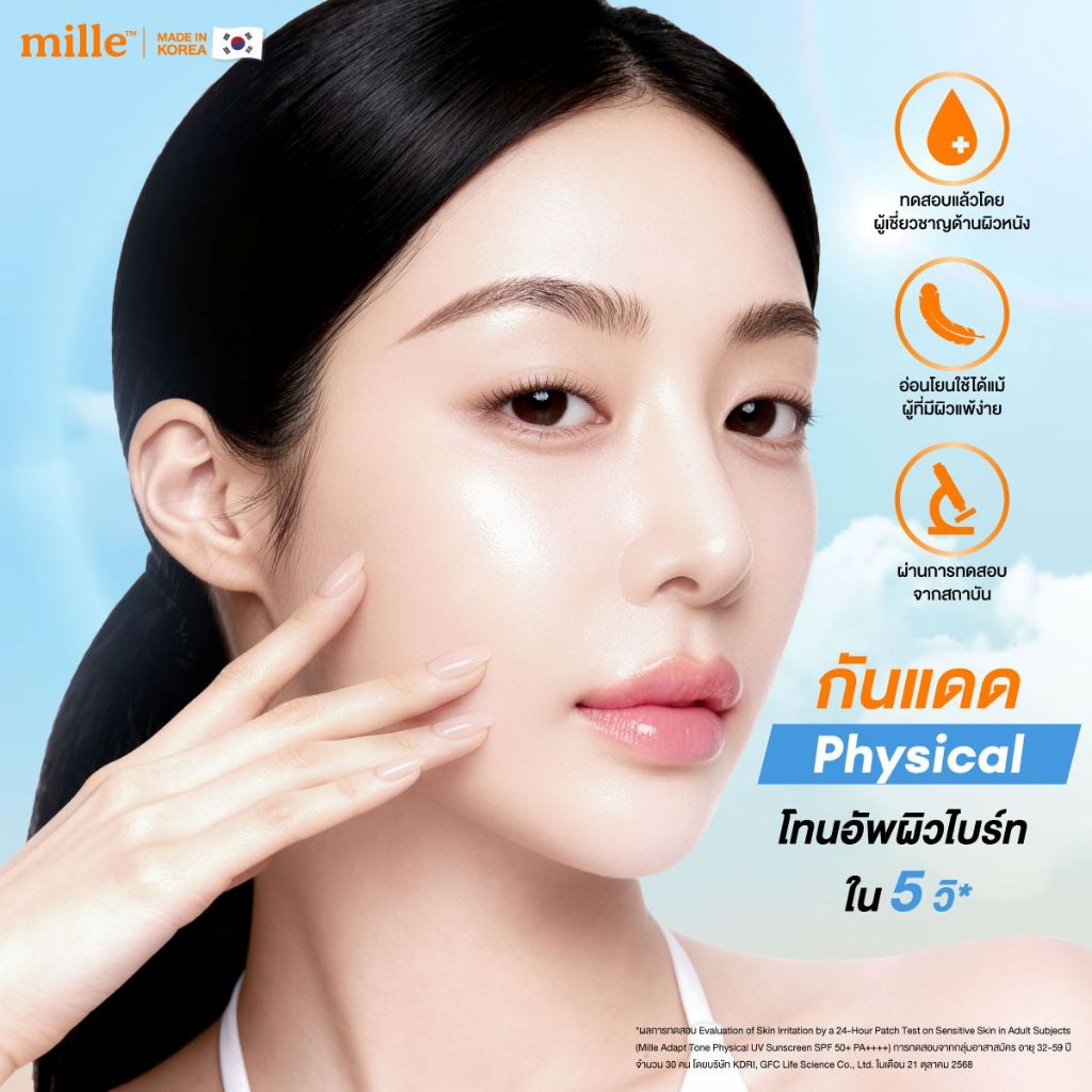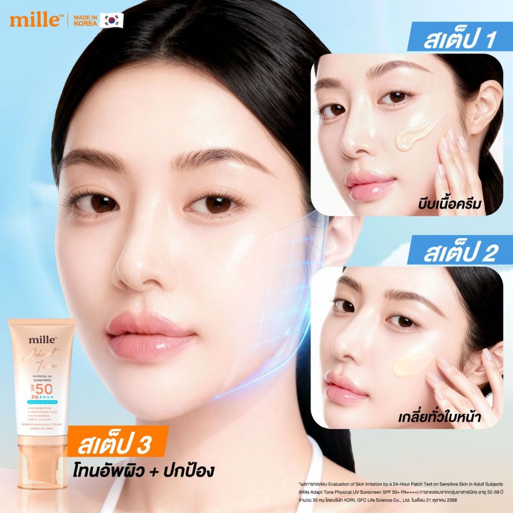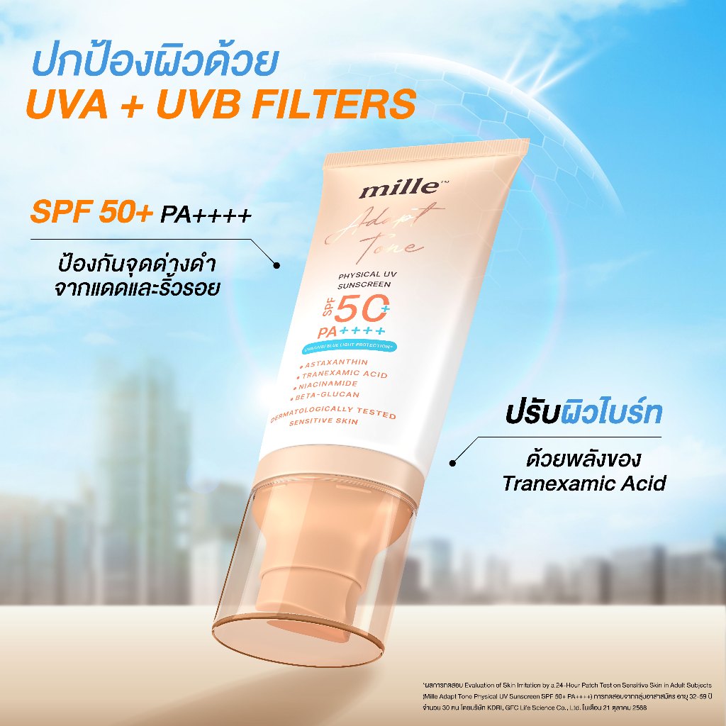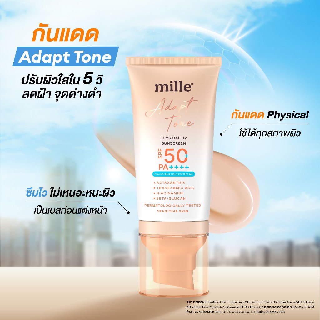 Mille Adapt Tone Physical UV Sunscreen SPF50+ PA++++ 40g. มิลเล่ กันแดดโทนอัพปรับผิวใส