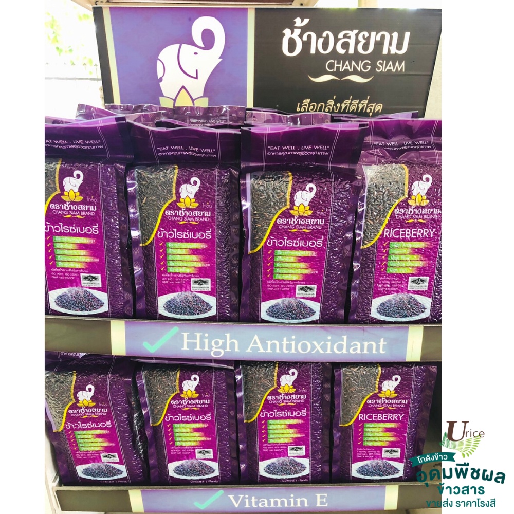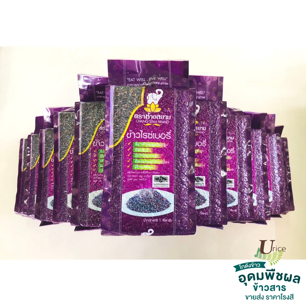ข้าวไรซ์เบอรี่แท้100% คัดพิเศษ สุรินทร์ สีสดมีจมูกข้าว มีไฟเบอร์และวิตามินสูง ตรา ช้างสยาม 1 กก.