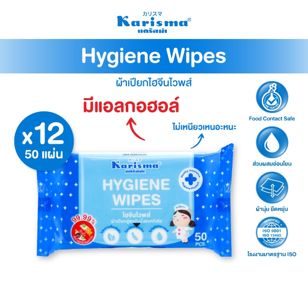 Karisma แคริสม่า ผ้าเช็ดทำความสะอาด ทิชชู่เปียก ไฮจีนไวพส์ 50 แผ่น
