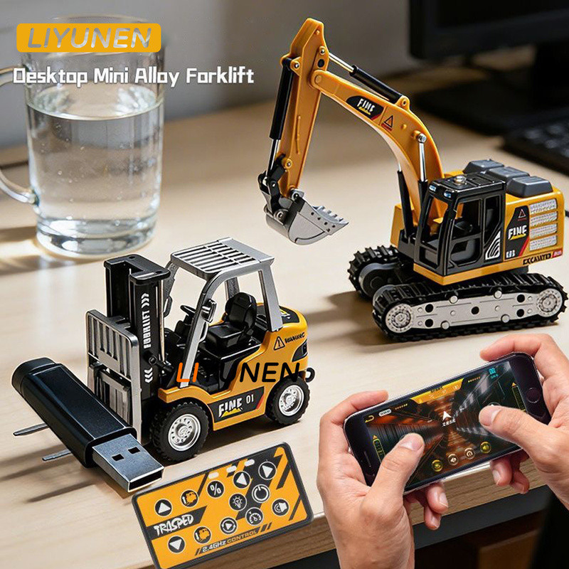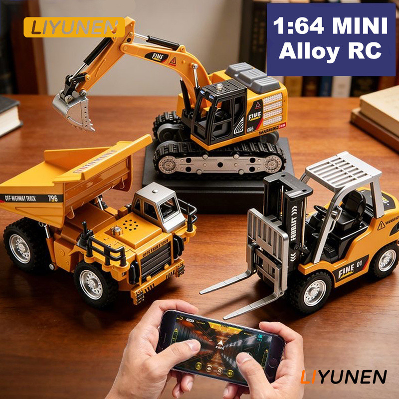 MINI 1:64 Alloy RC Excavator Dump รถบรรทุกรถยกขนาดเล็กเดสก์ท็อปพ็อกเก็ตวิศวกรรมยานพาหนะรีโมทคอนโทรลรถบรรทุกรถของเล่น 1/64 สําหรับของขวัญเด็กของเล่น