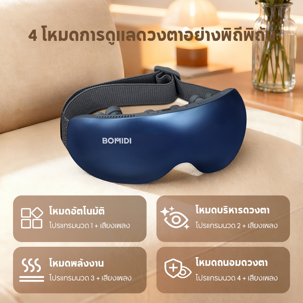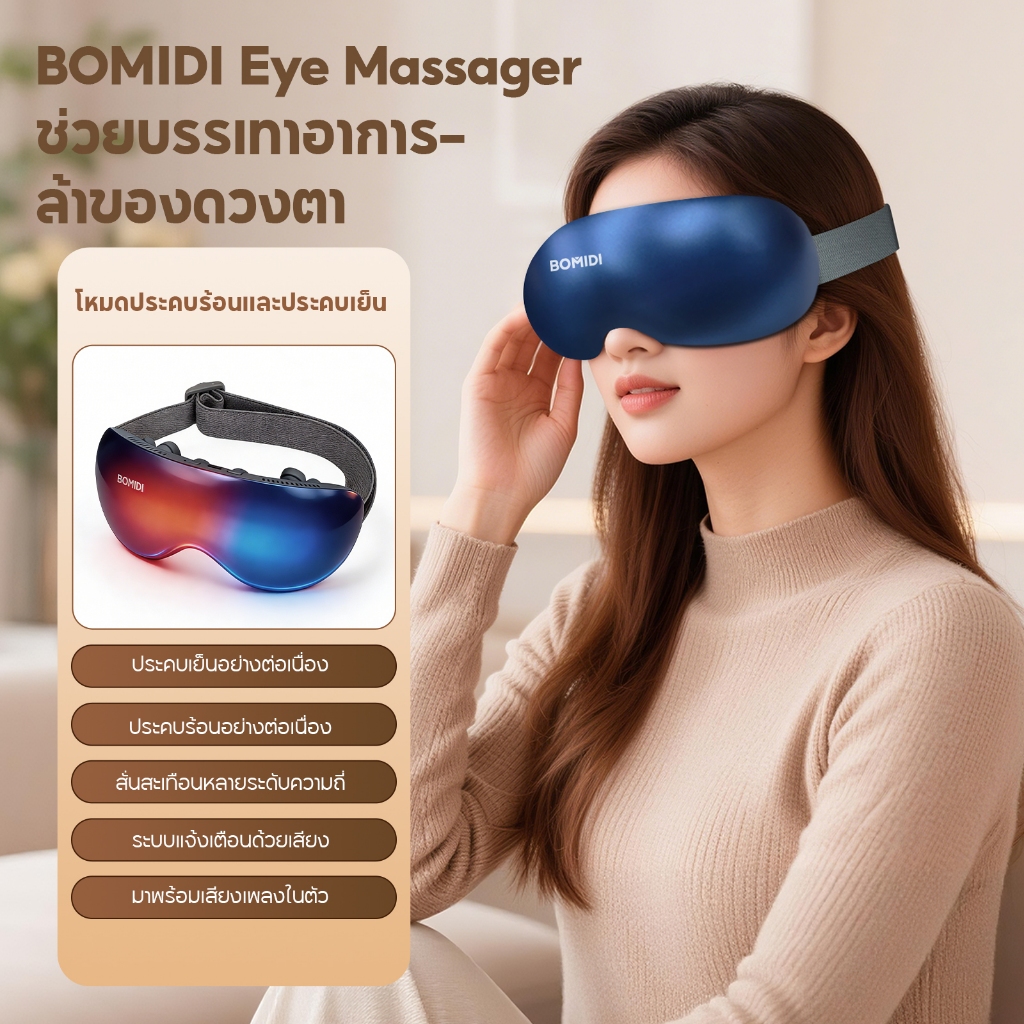 BOMIDI เครื่องนวดตาอัจฉริยะ EM01 | ประคบเย็นและร้อนร่วมกัน ดีไซน์บางเบา พกพาง่าย แบตเตอรี่อึดทนนาน