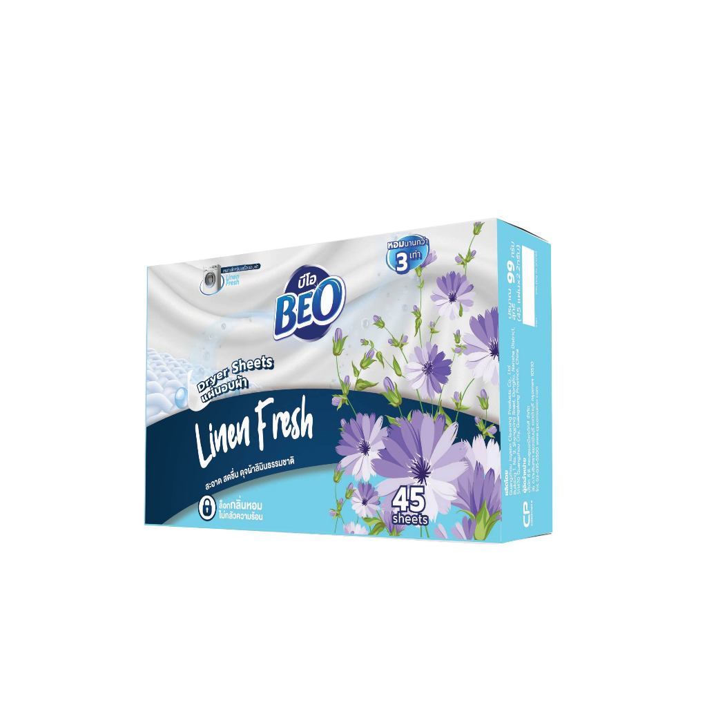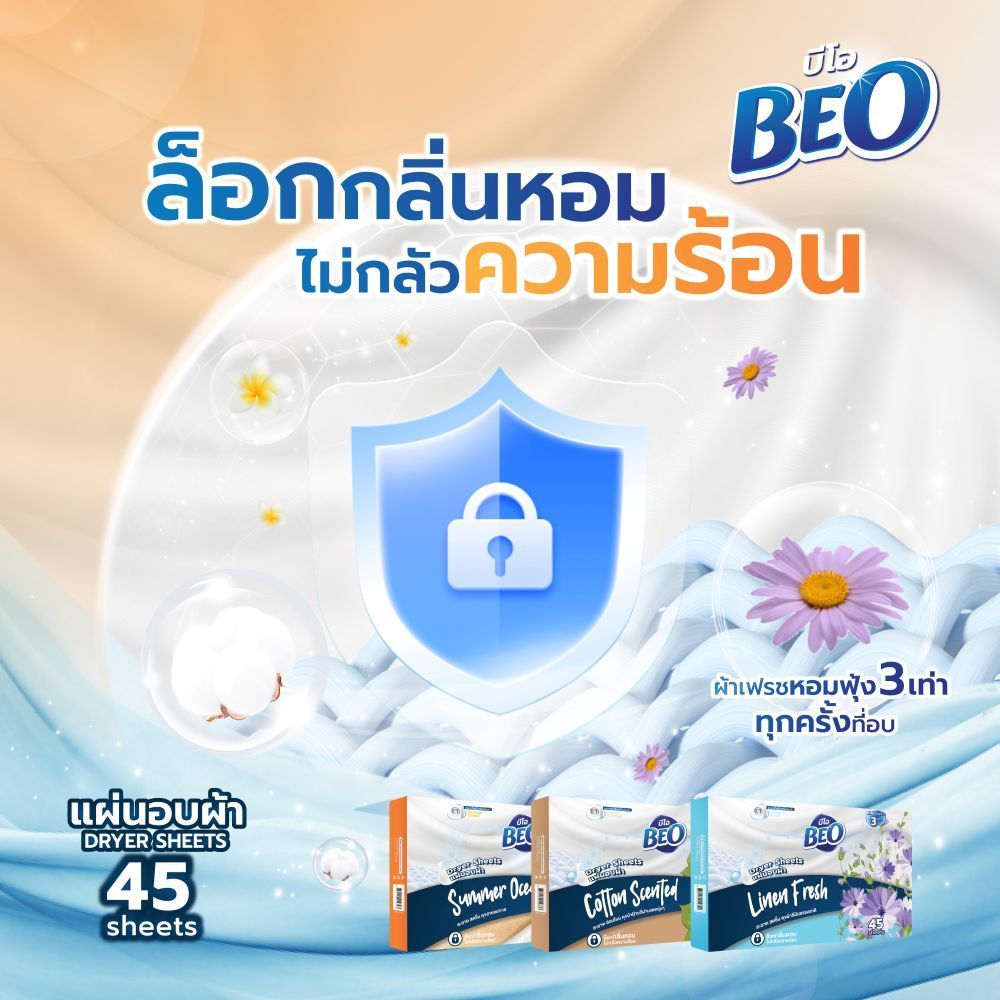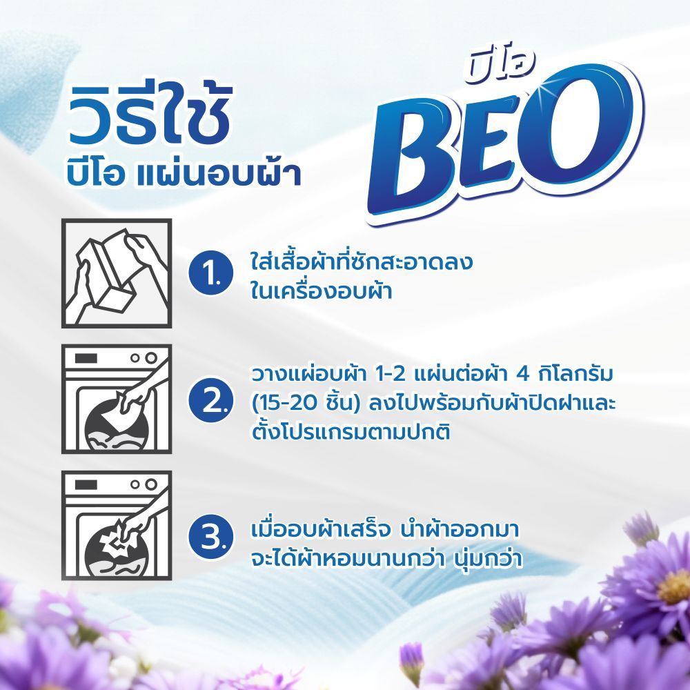 Beo Dryer Sheets บีโอ แผ่นอบผ้า กลิ่นหอม ช่วยให้ผ้านุ่ม ใช้กับเครื่องอบผ้า 3 กลิ่น กล่อง 45 แผ่น