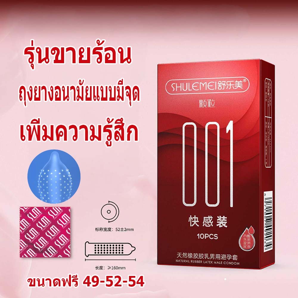 SLM ถุงยางอนามัย 001 แบบบาง (10ชิ้น/1กล่อง) ขนาดฟรี 52 มม.🚚ไม่ระบุชื่อสินค้าหน้ากล่อง