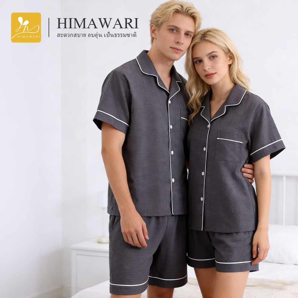 HIMAWARI丨ชุดนอนคู่ ชุดนอน ชุดนอนผ้าฝ้าย ดีไซน์เกาหลีแฟชั่น กางเกงขาสั้น Unisex มีหลายไซส์