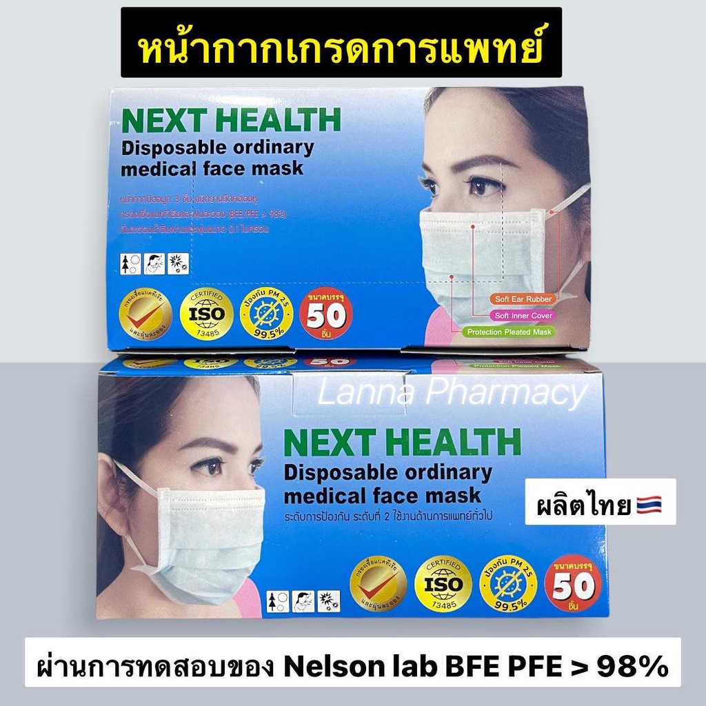 ❤️พร้อมส่งจากร้านยา❤️กล่องโฉมใหม่ TLM หน้ากากอนามัยเกรดการแพทย์ NEXT HEALTH 3ชั้น (กล่อง 50 ชิ้น) 🇹🇭ผลิตในประเทศไทย
