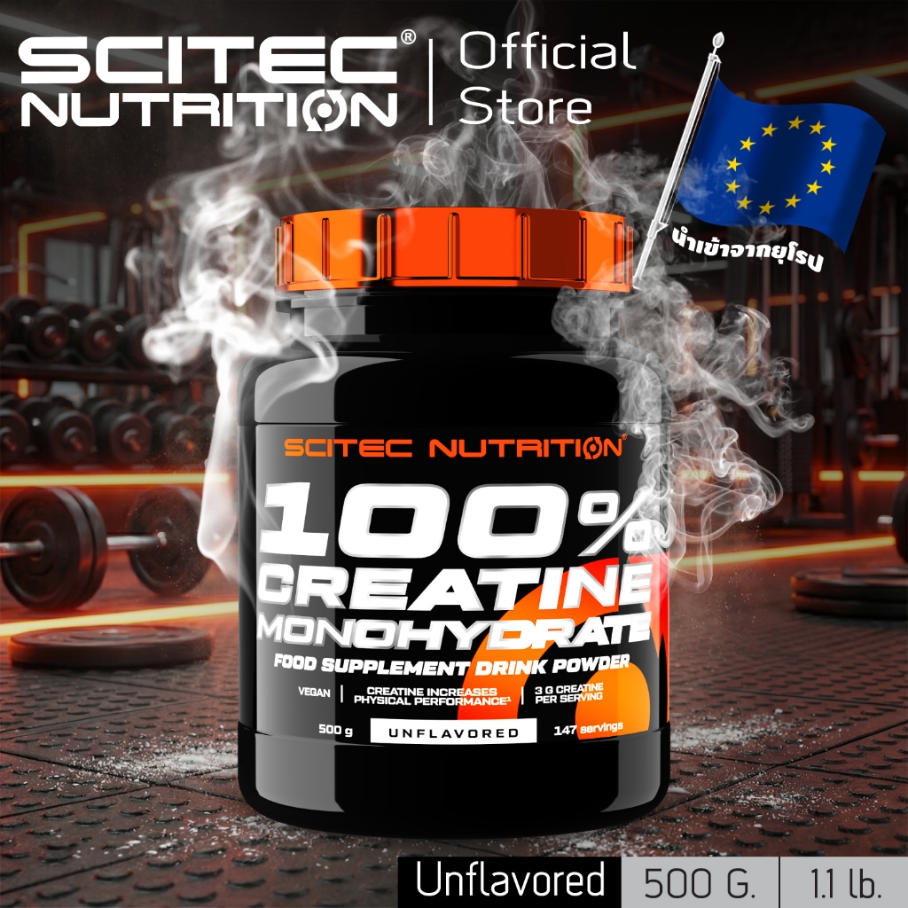 SCITEC NUTRITION Creatine Monohydrate Unflavored 500g ครีเอทีน เพิ่มแรง ปั๊มกล้าม เพิ่มมวลกล้าม