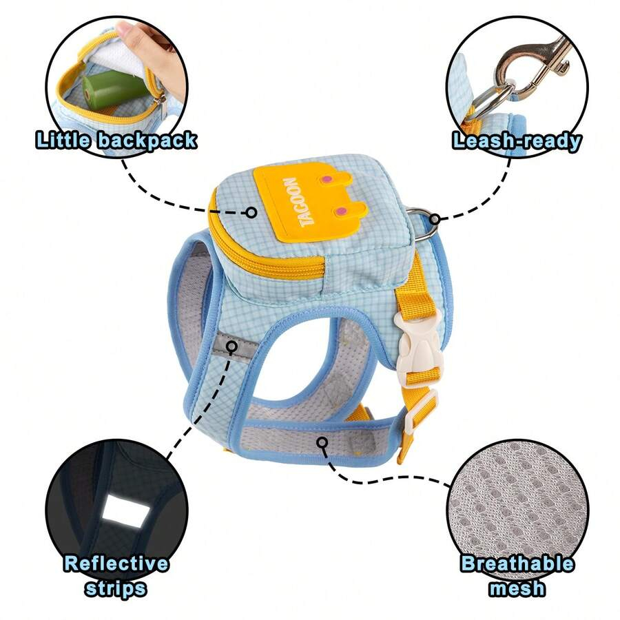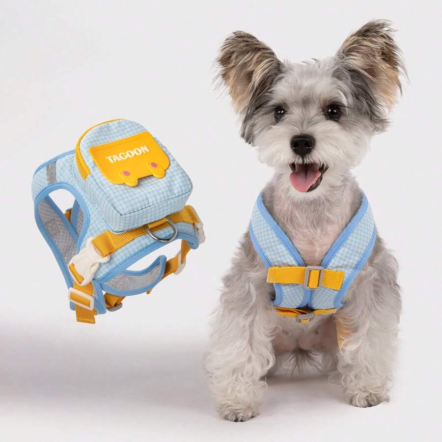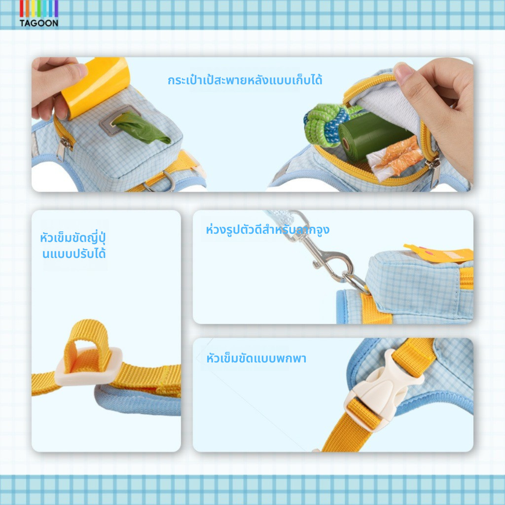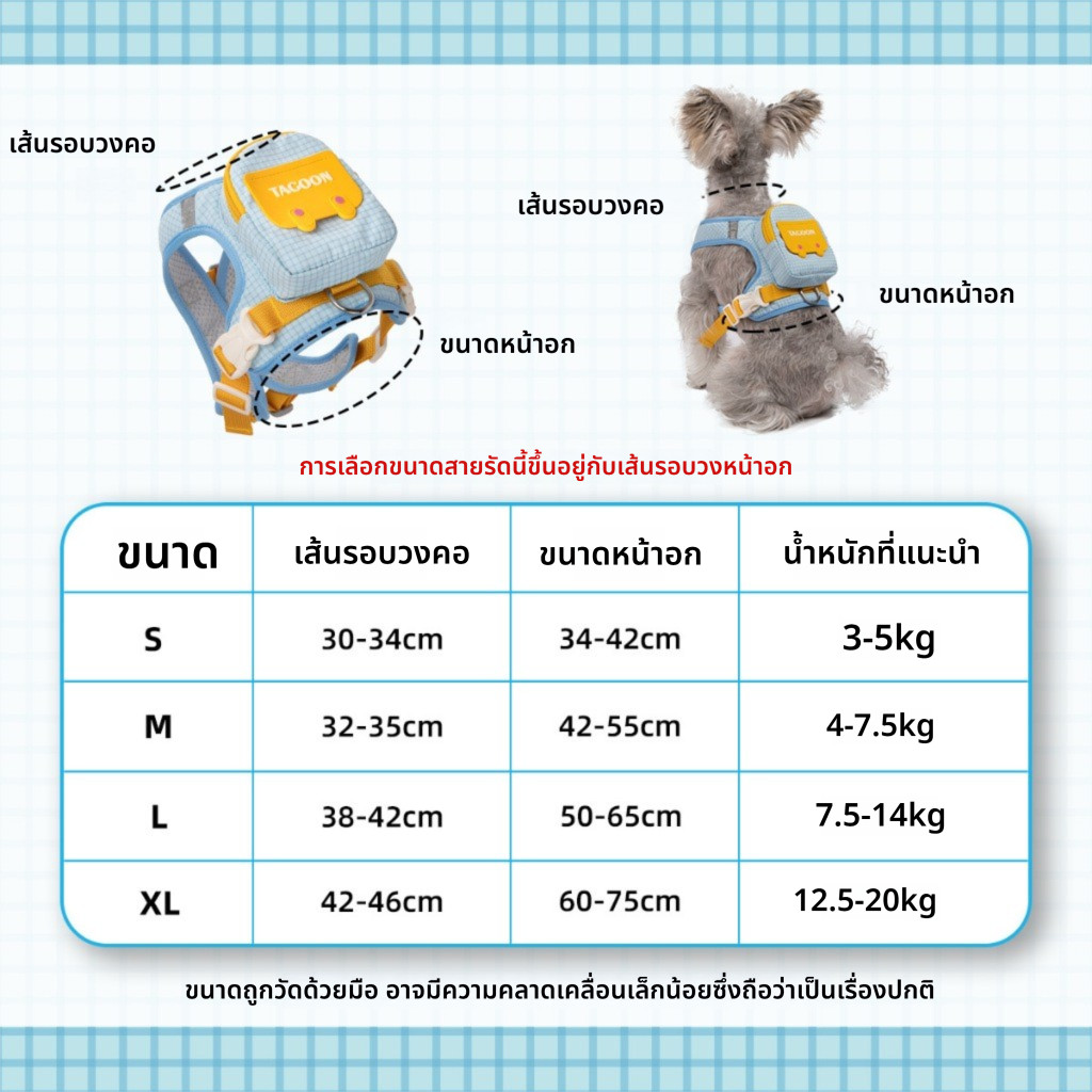 ปลอกคอสุนัข สายจูงสุนัข ปลอกคอแมว สายจูงแมว สีกุหลาบแดงสีฟ้าอ่อนสีม่วงอ่อนสีกากี ชุดกระเป๋าเป้ S-XL