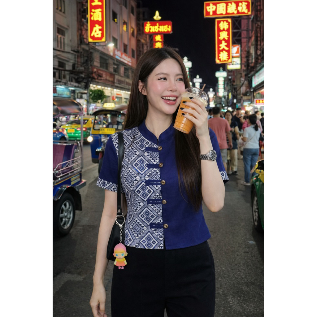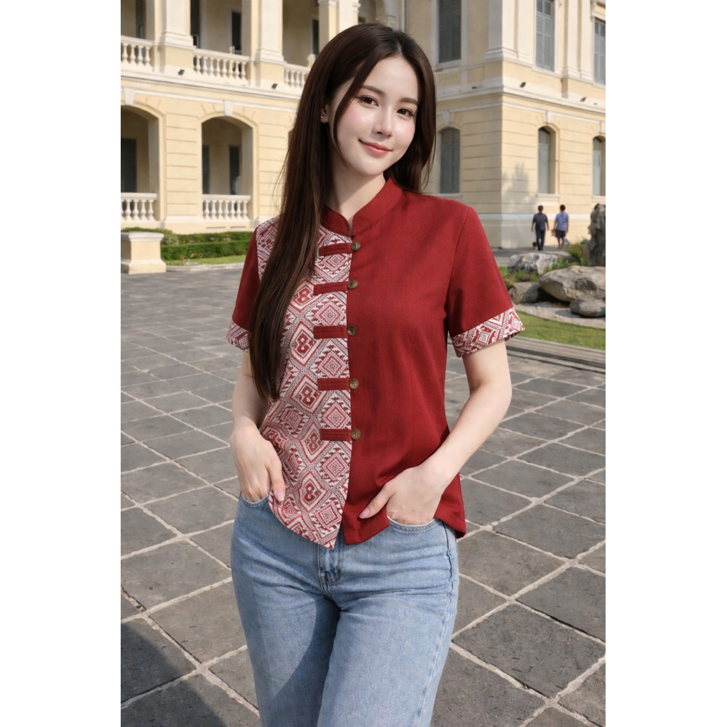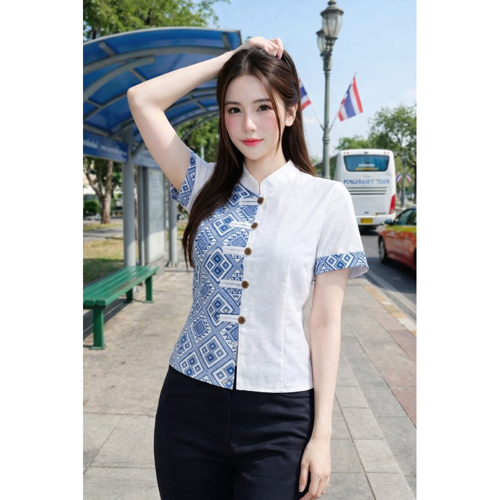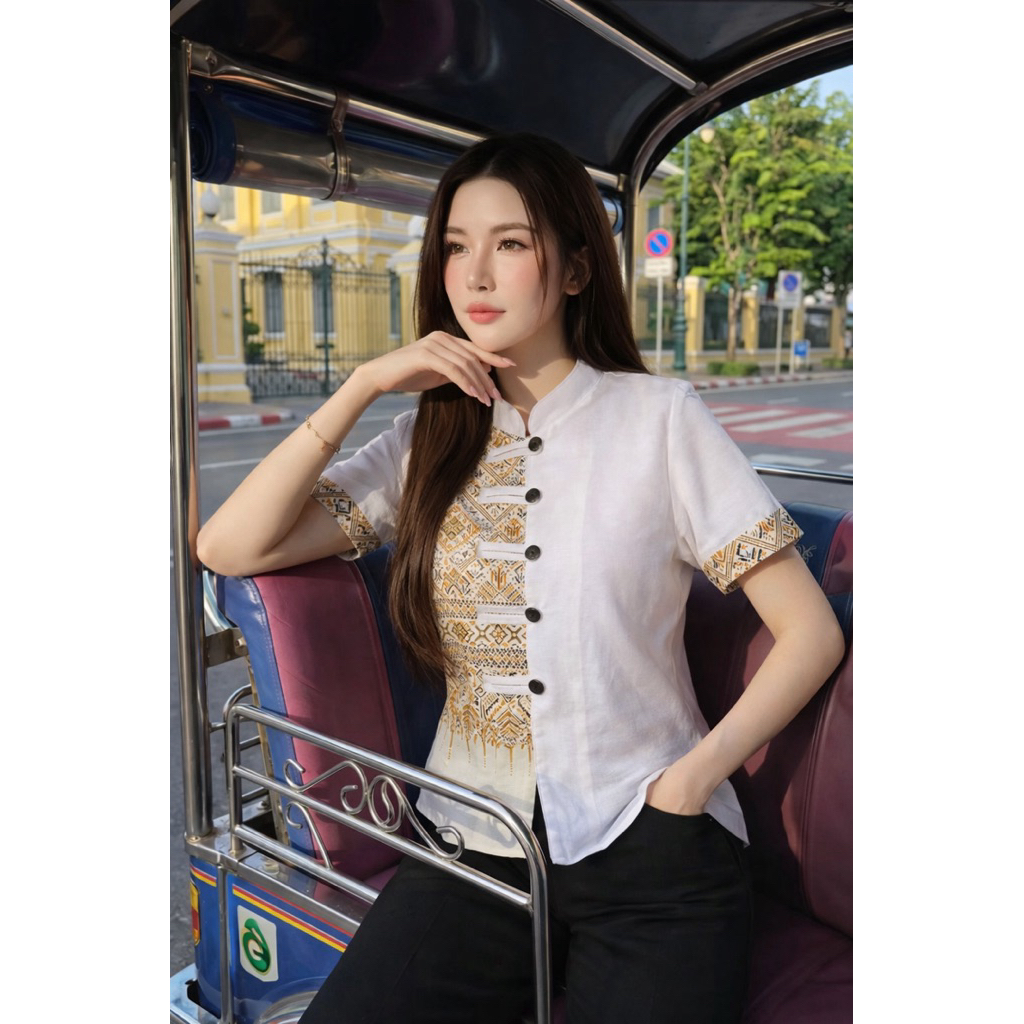 เสื้อผ้าไทยสินค้ามาใหม่ แต่งลายผ้าทอเนื้อผ้าฝ้ายนุ่มใส่สบาย