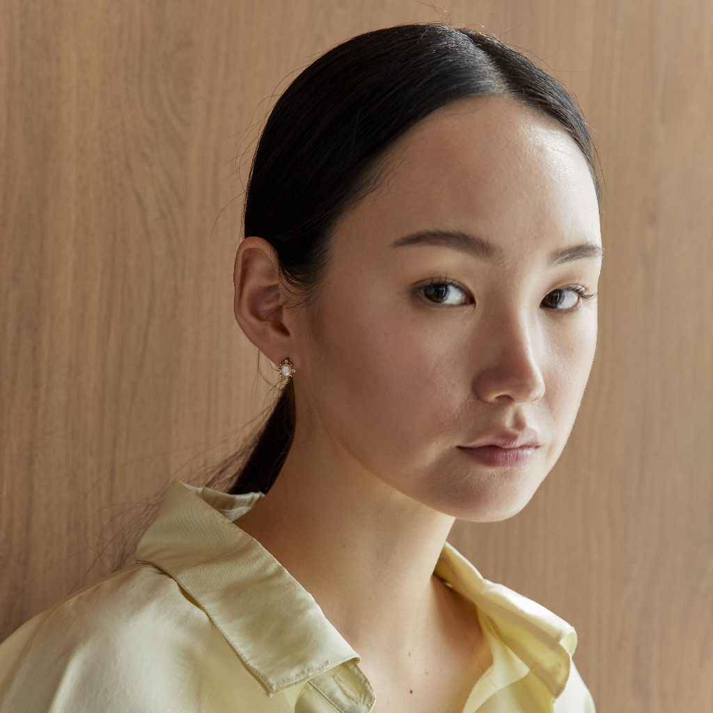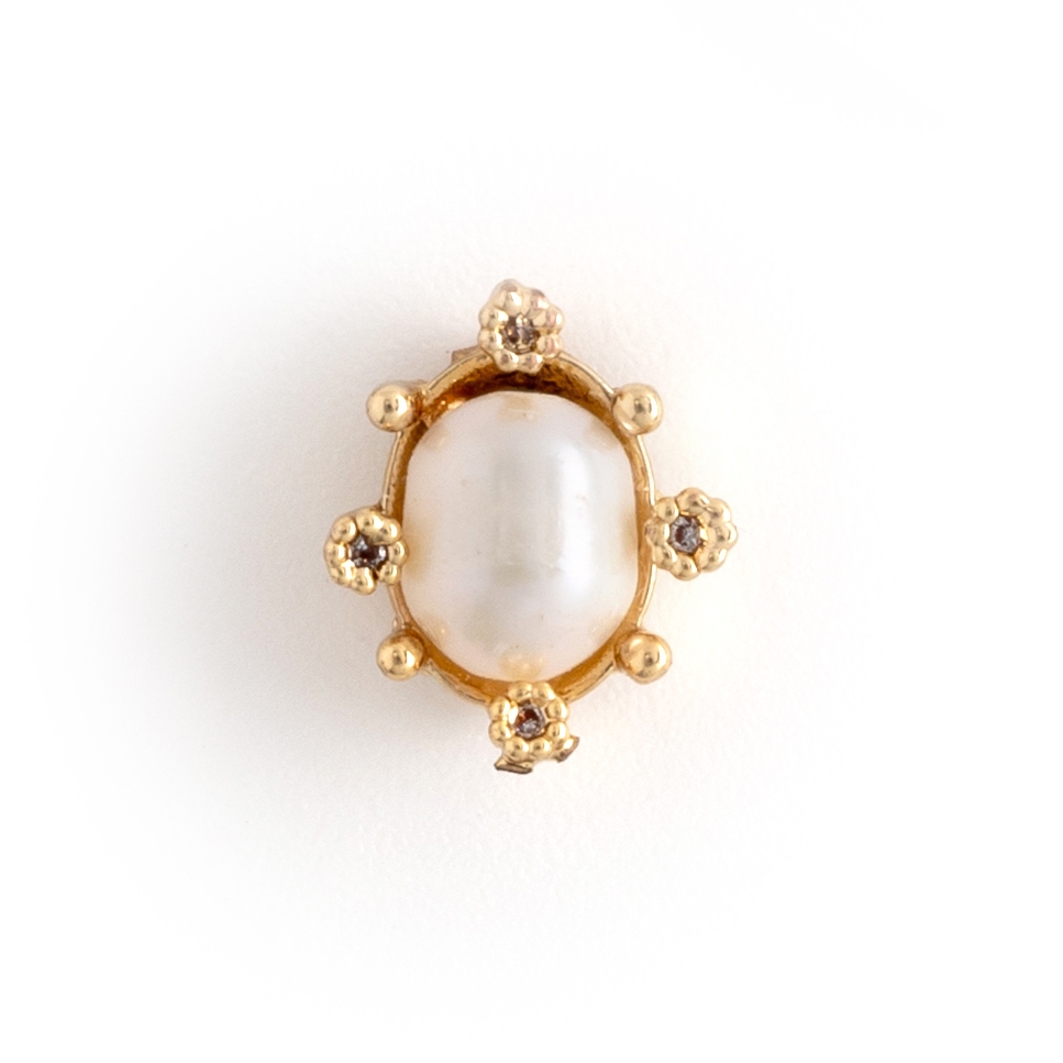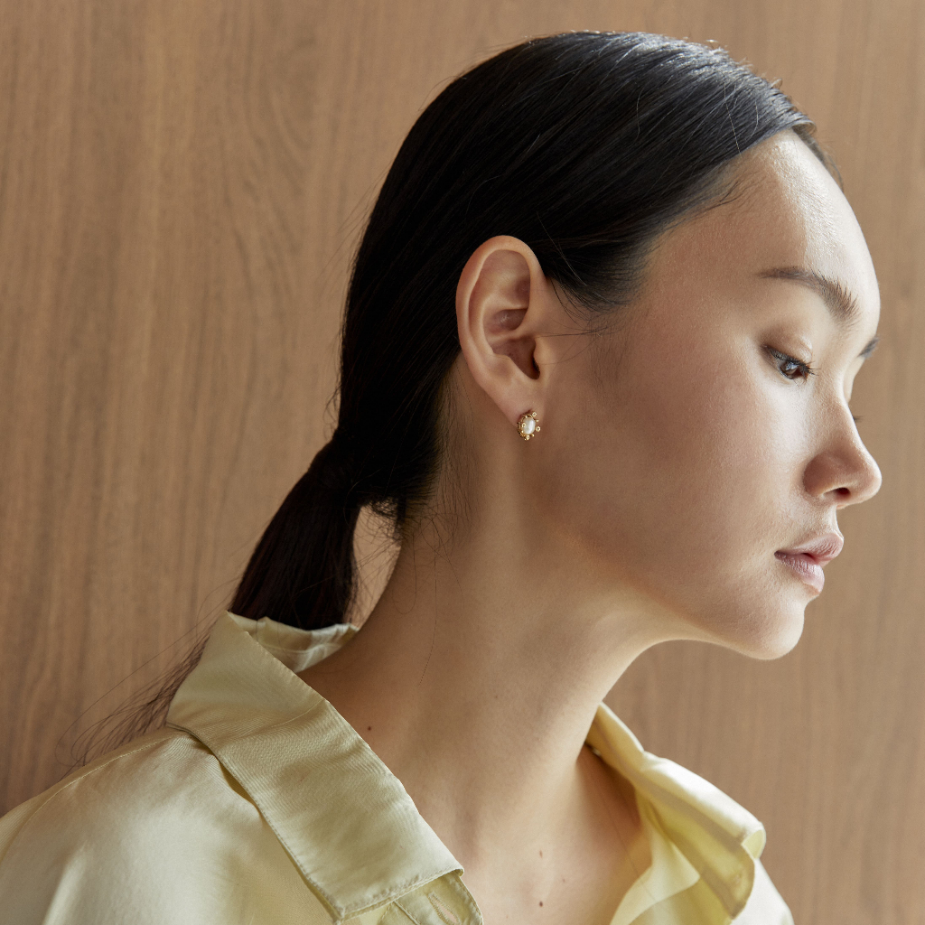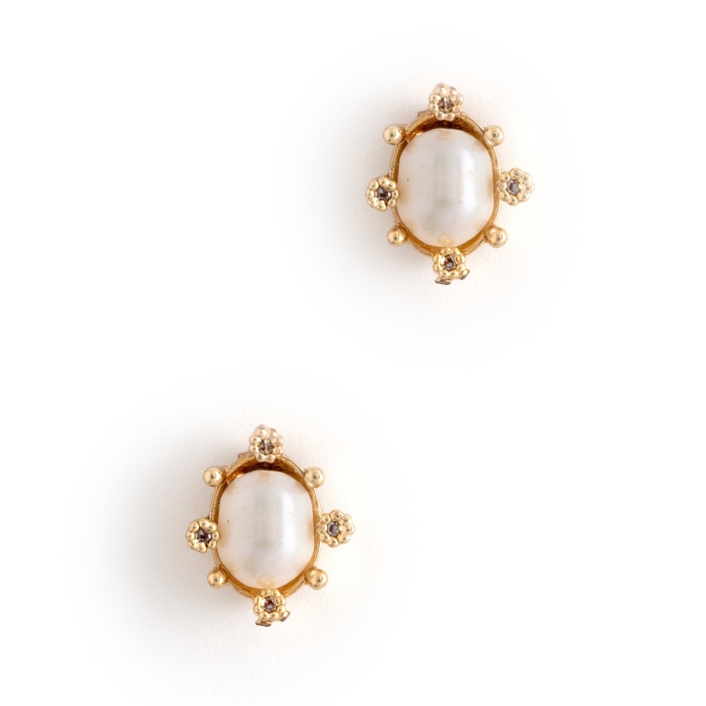 RHINESTONE OVAL WHITE PEARL STUD EARRINGS ต่างหูมุก ไข่มุกขาว ประดับคริสตัลวงรี