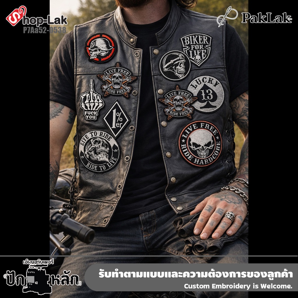 แผ่นปัก Biker Patch Skull สไตล์ Harley ติดแจ็คเก็ต งานปักแน่น สายฮาร์ดคอร์
