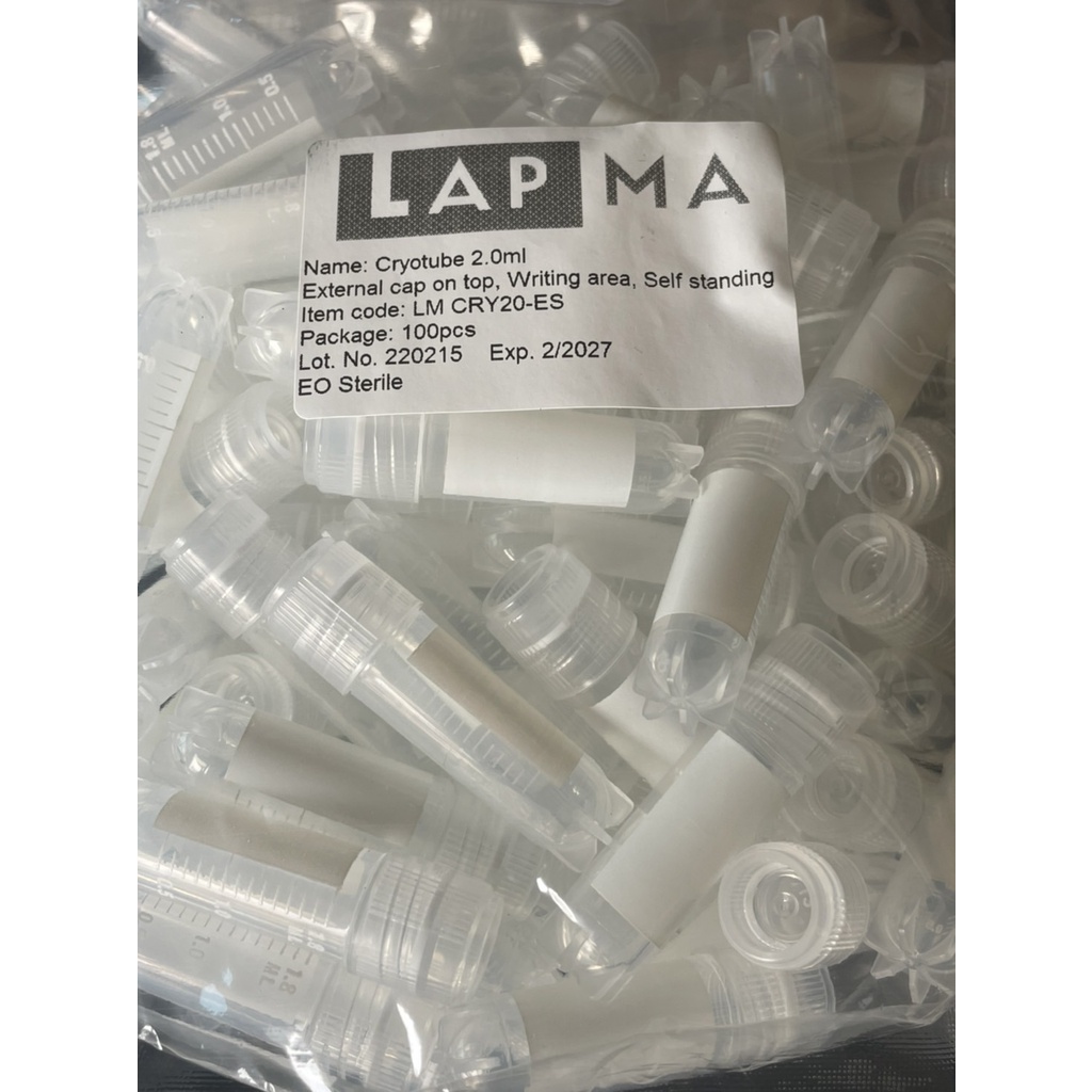 หลอดแช่แข็ง ฝาเกลียวนอก ฝาเกลียวใน cryovial tube 2 ml ,100ชิ้น/ถุง ทนอุณหภูมิได้ -196 องศาเซลเซียล