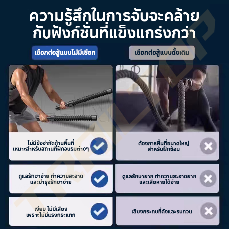 TRAILTOP จัดส่งรวดเร็ว เชือกรบไร้สาย Gym Battle Rope เชือกฟิตเนส สปริงยืดหยุ่นสูง พร้อมยางนุ่มกันลื่น
