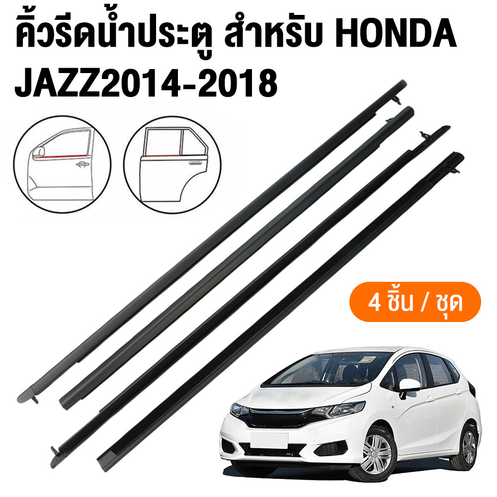 4เส้น คิ้วรีดน้ำประตู Honda JAZZ 2014-2018 แจ๊ส คิ้วรีดน้ำยางรีดนำ้ขอบกระจก weatherstrip ยางรีดน้ำนอก