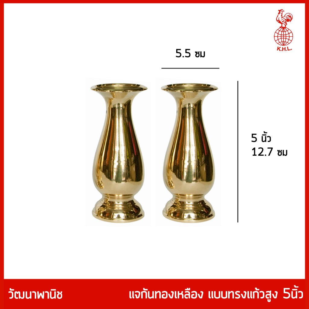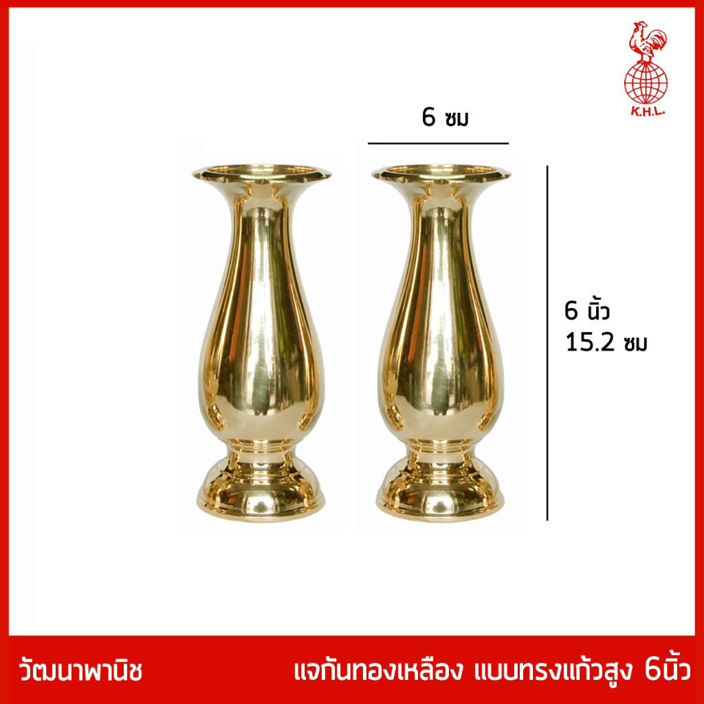 THAI BRONZE - แจกันทองเหลืองทรงแก้ว แจกันดอกไม้ ไหว้พระ สีทอง มีหลายขนาด ราคาคู่