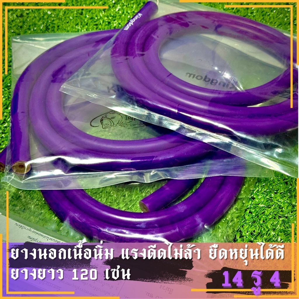 ยางล่าปลา KINGDOM 14 มิล รูใน 4 มิล ยาว1.20เมตร ยางนอกหนา3 ชั้นให้แรงระยะไกล ใส่หน้าไม้ปลาบนบกและใต้น้ำ