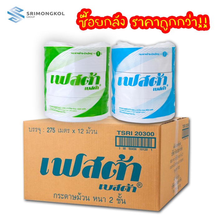 กระดาษชำระม้วนใหญ่ จัมโบ้โรล เฟสต้า เบสต้า ยกลัง 12 ม้วน 1ชั้น 550m. / 2ชั้น 275m. ทิชชู่ม้วนใหญ่ ทิชชู่ห้องน้ำ