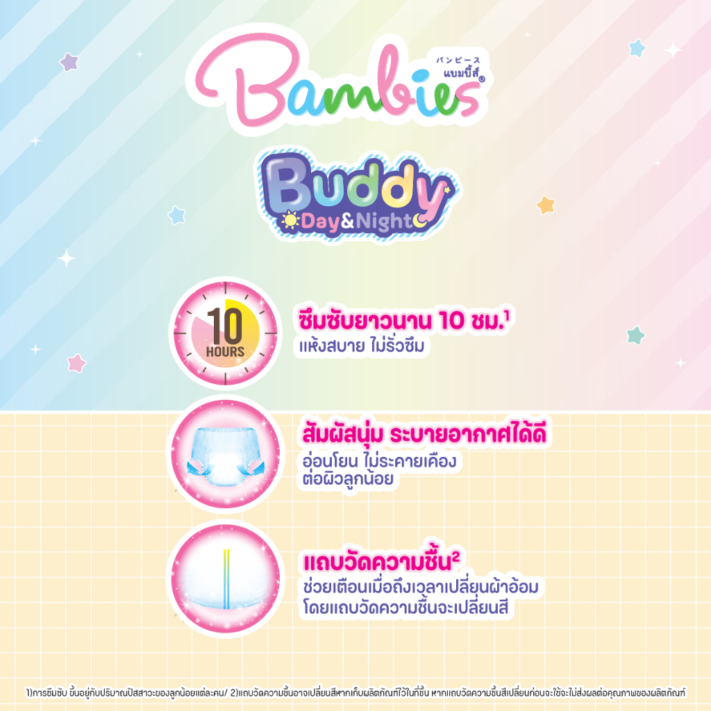 [ยกลัง] BAMBIES Buddy Day&Night Pants ผ้าอ้อมเด็กแบบกางเกง ซึมซับ10ชม. ไซส์ XXL (3แพ็ค)