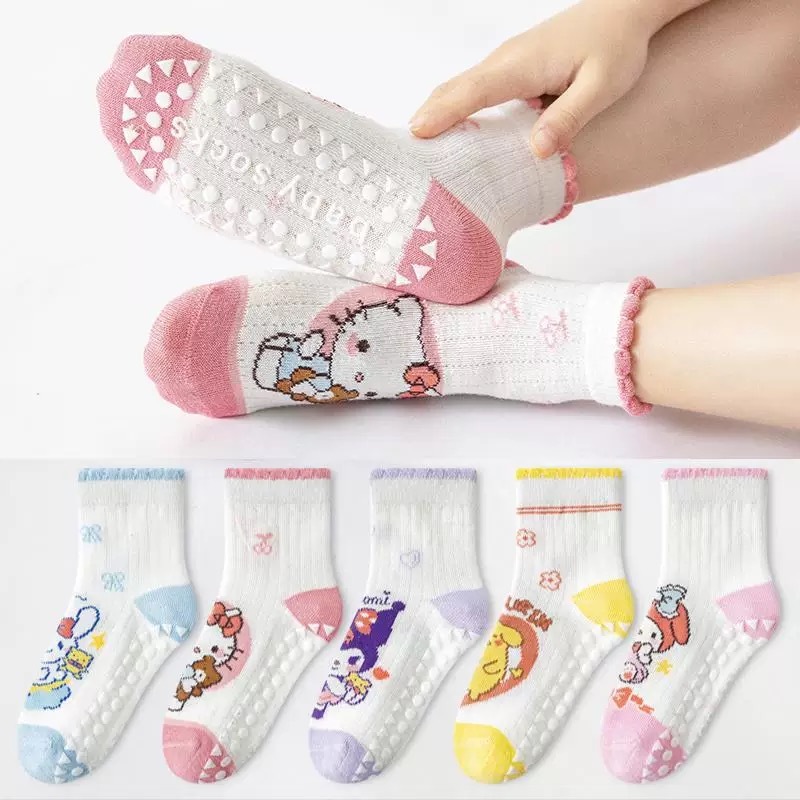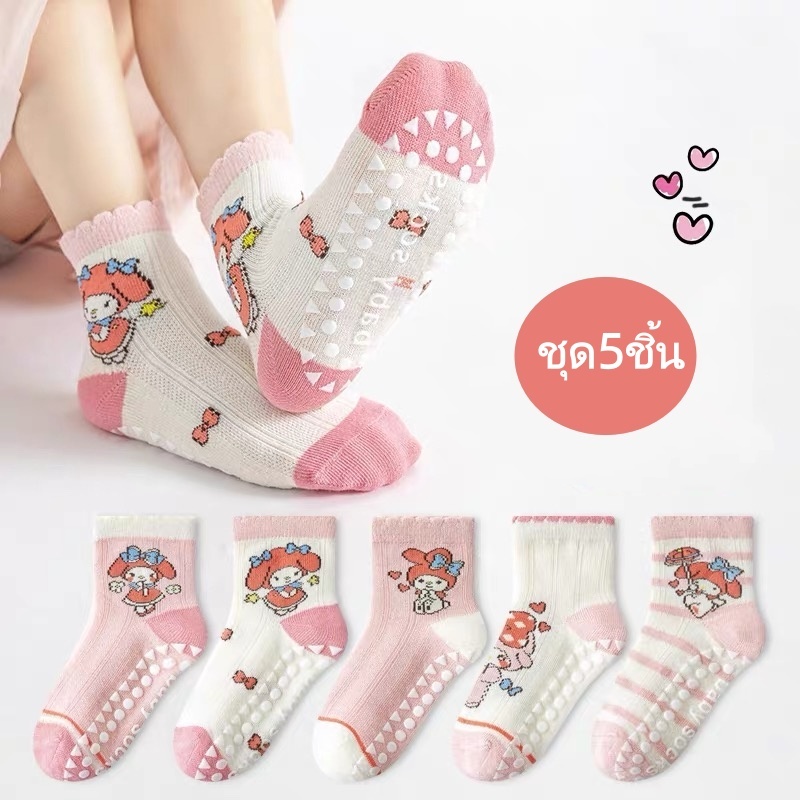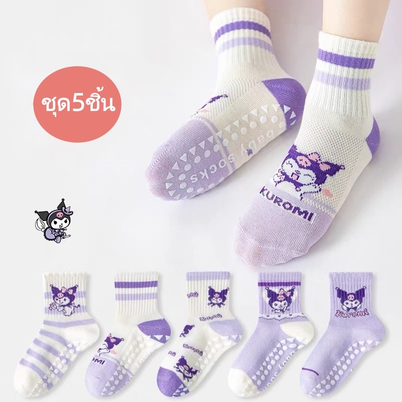 ⚡พร้อมส่ง⚡ ถุงเท้าเด็ก ถุงเท้าเด็กกันลื่น 1 แพคมี 5 คู่ ลายKuromiเด็กผู้หญิงสีม่วง