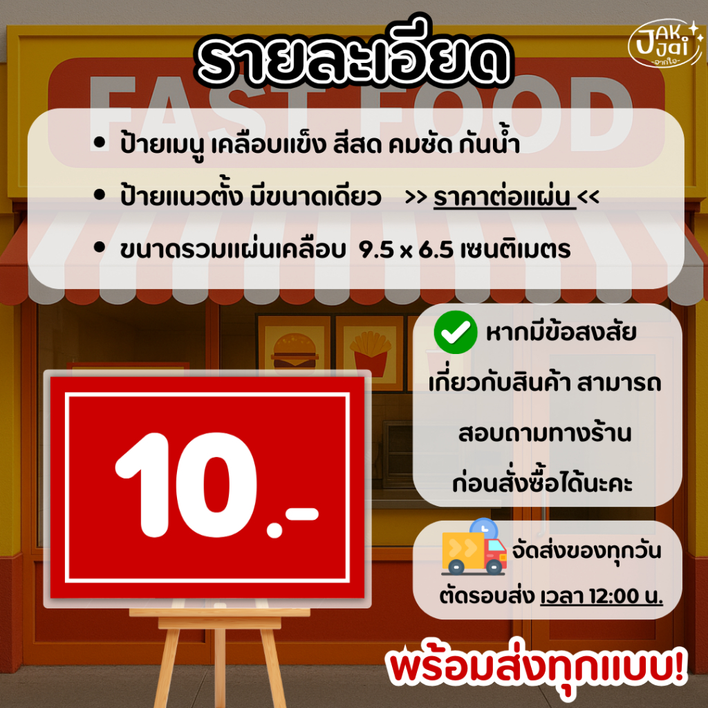 ✅พร้อมส่ง! ป้ายราคาเคลือบแข็ง (สีแดง) /วัสดุเคลือบแข็ง กันน้ำ ตกแต่งร้าน ขนาด 9.5 x 6.5 cm. (ราคาต่อ 1แผ่น) - jakjai
