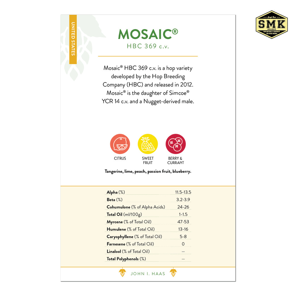 Mosaic® 2 oz. (US) HOPS T-90 BARTH HAAS : AA : 12.6% Cy :2025 ฮอปส์ ทำเบียร์ คราฟท์เบียร์