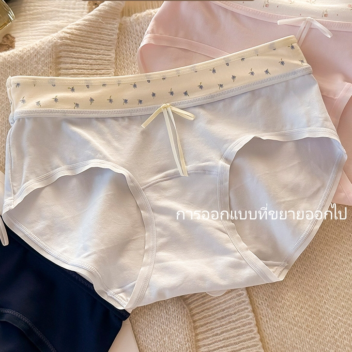 🍥🍥กางเกงชั้นในผู้หญิง ผ้าฝ้ายแท้ ไซส์ M-2XL ระบายอากาศได้ดี อ่อนโยนต่อผิว นุ่มสบาย ดีไซน์เป้ายาวพิเศษ ไม่บีบก้น มี 5 สี