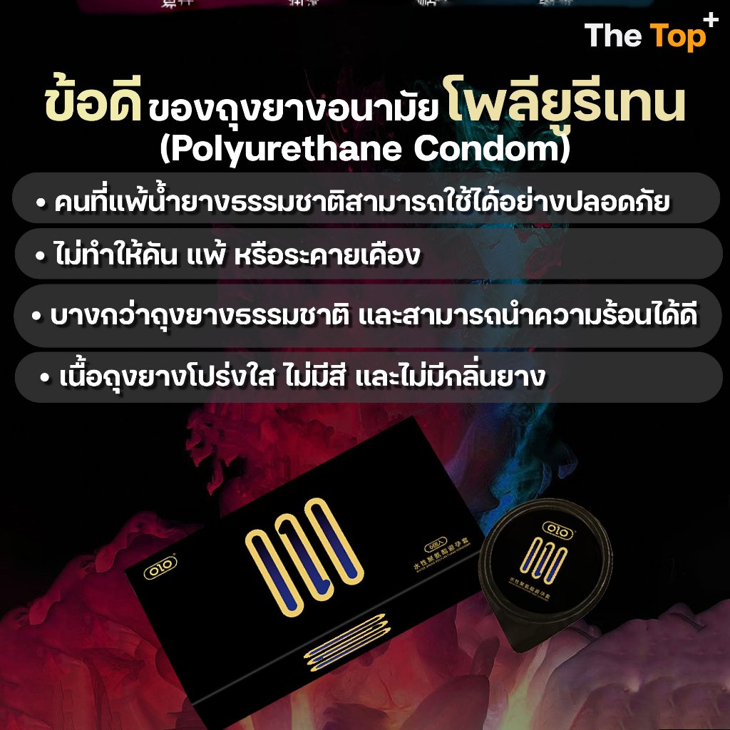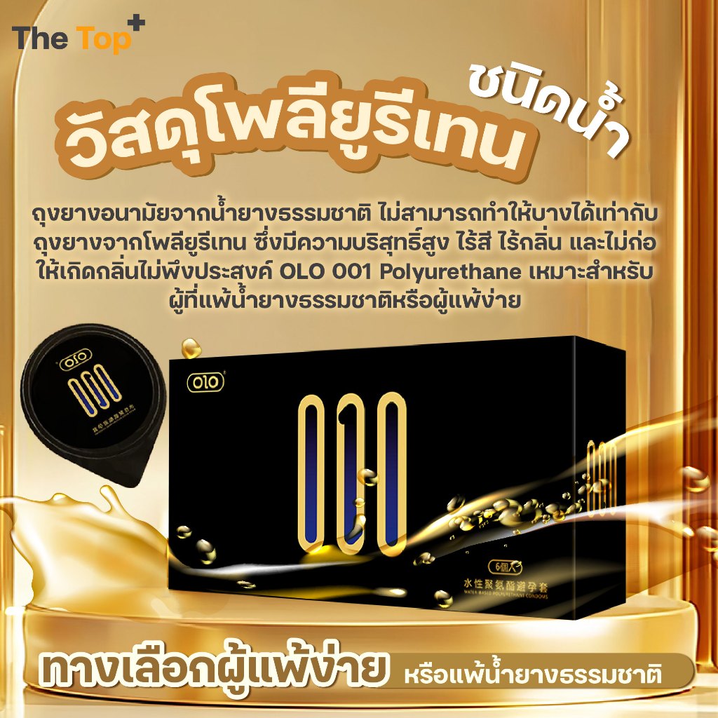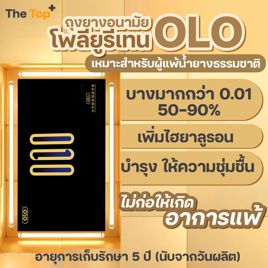 OLO ถุงยางโพลียูรีเทน บางกว่า 0.01 ถึง 50-90% เหมาะกับผู้แพ้น้ำยางธรรมชาติ ไซส์ 54±2 มม.