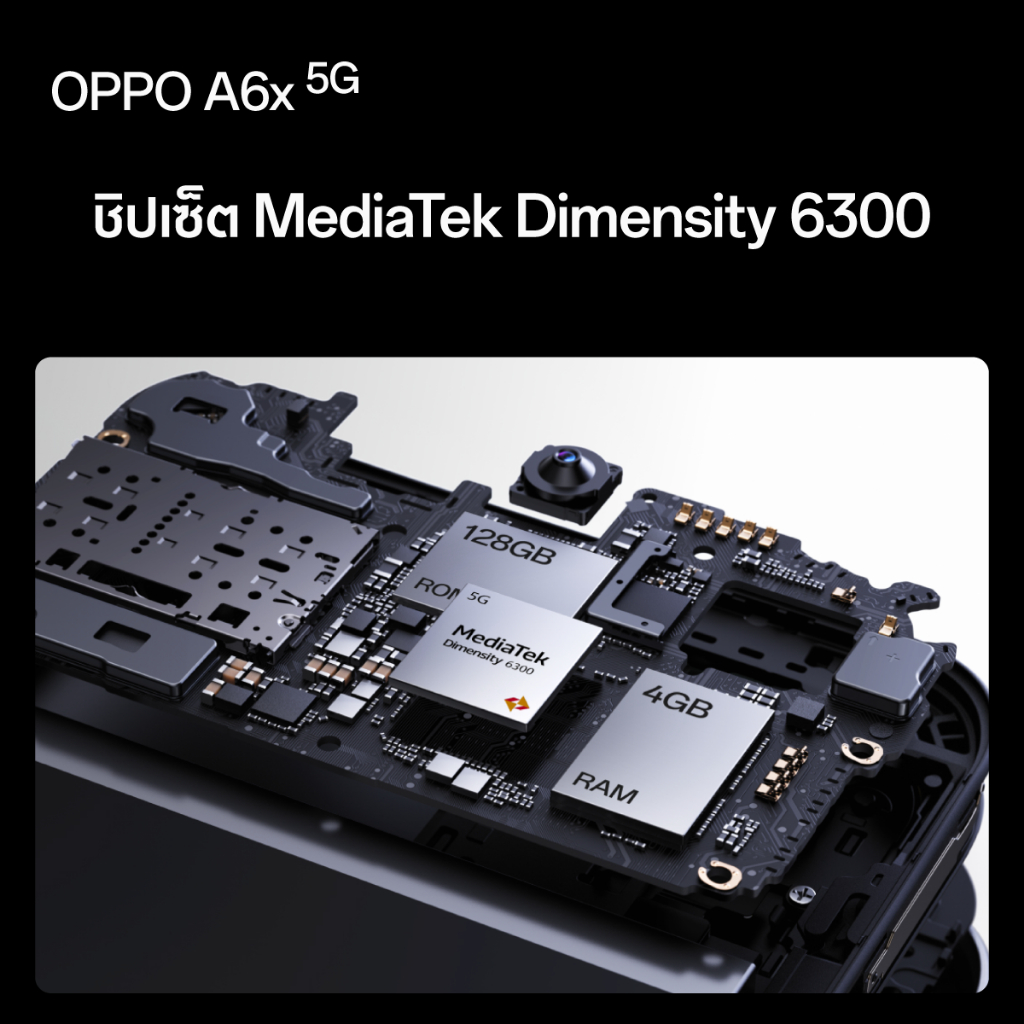 [New] OPPO A6x 5G(4+128G)โทรศัพท์มือถือ กันน้ำกันฝุ่นระดับ IP64 ชิปเซ็ต MediaTek Dimensity 6300 แบตเตอรี่ใหญ่ 6,500mAh