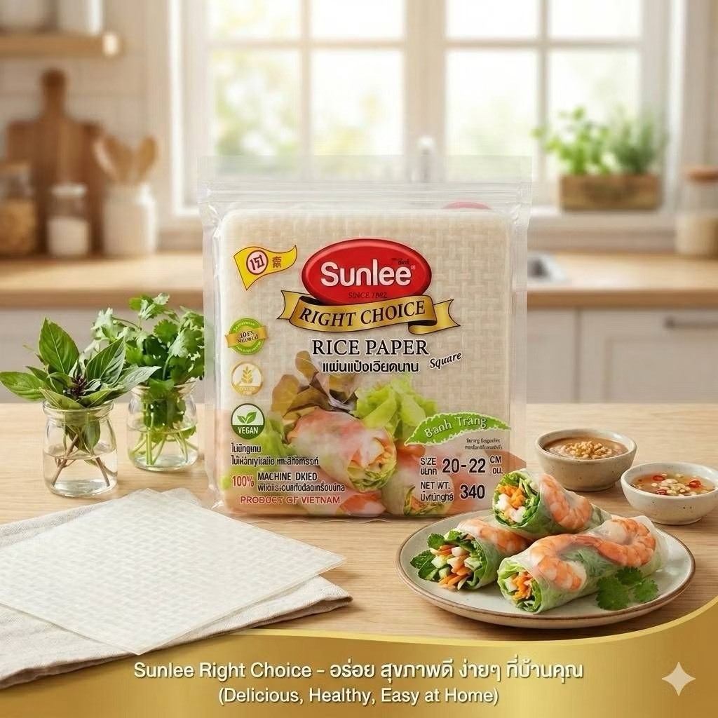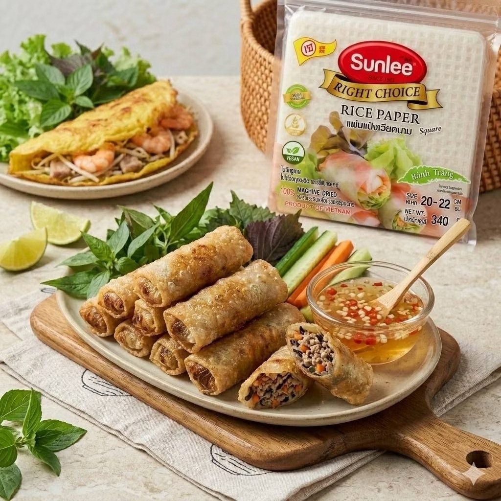 แผ่นแป้งเวียดนาม แบบเหลี่ยม ตรา ซันลี ขนาด 20-22 ซม. น้ำหนัก 340 กรัม BY MUIKID
