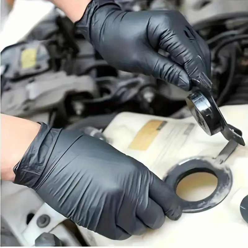 ถุงมือยางไนไตรล์ ไม่มีแป้ง มาตรฐานFood Grade - ทนน้ำมัน กันเคม | 100 ชิ้น/กล่อง ใส่สบายไม่แรง