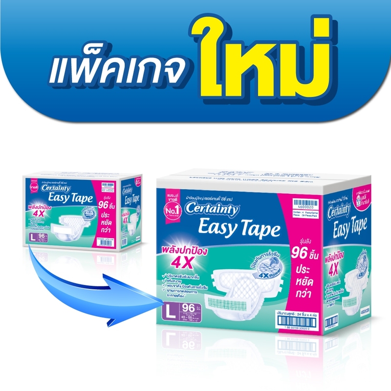 [CFS] ผ้าอ้อมผู้ใหญ่แบบเทป เซอร์เทนตี้ อีซี่เทป ราคาประหยัด ลัง Super Save ไซส์ L 96 pcs