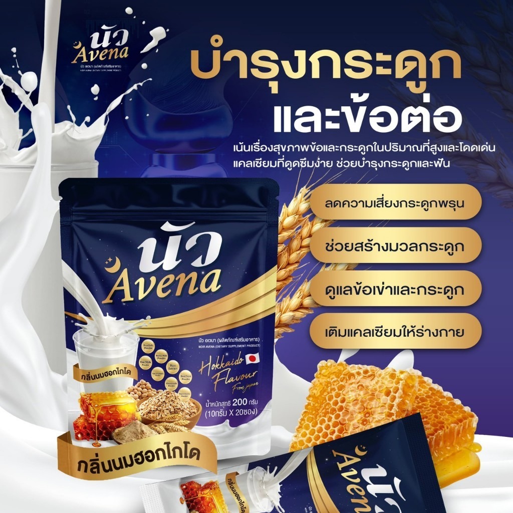 [โปร 3 ห่อคุ้ม!!] นัว อเวนา Noir Avena นมนัว นมผึ้งผสมข้าวโอ๊ตและรังนก กลิ่นนมฮอกไกโด บำรุงกระดูก