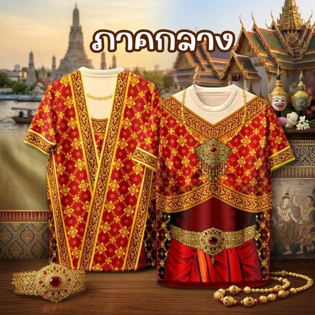 เสื้อคอกลม ลาย ชุดไทย 4 ภาค