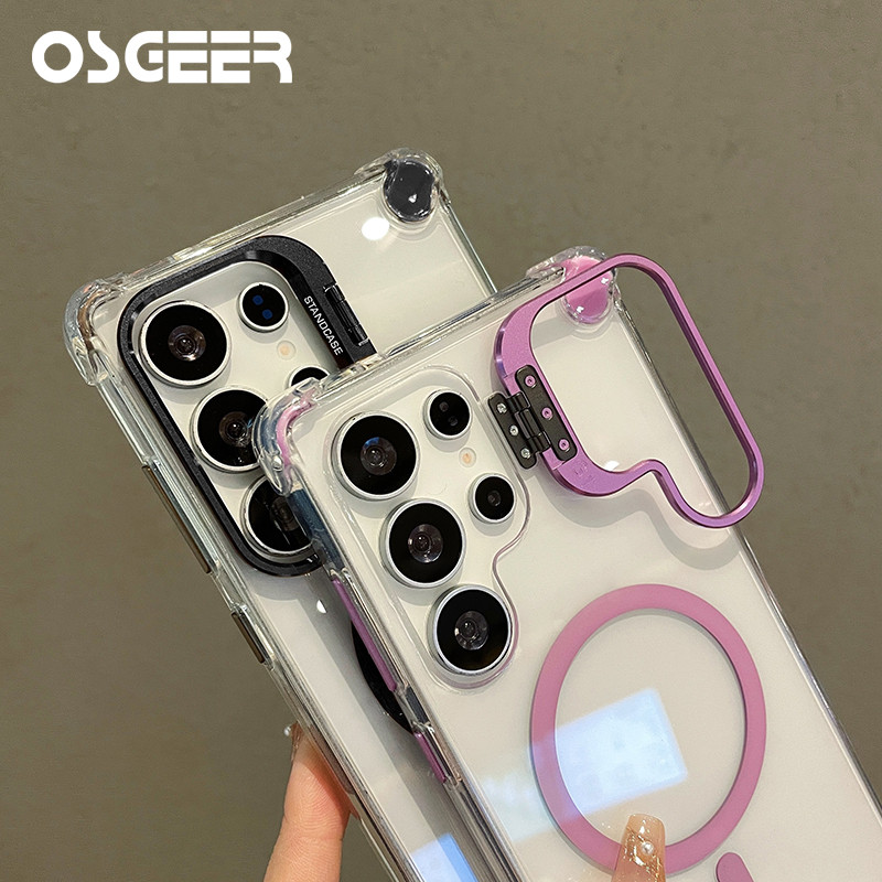 OSGEER สําหรับ Samsung Galaxy S26 S25 S24 Ultra 5G เคสโทรศัพท์พร้อมขาตั้ง, แม่เหล็ก Samsung S26 S25 S24 กรณี, ทหารกันกระแทกปกหลังกรณี