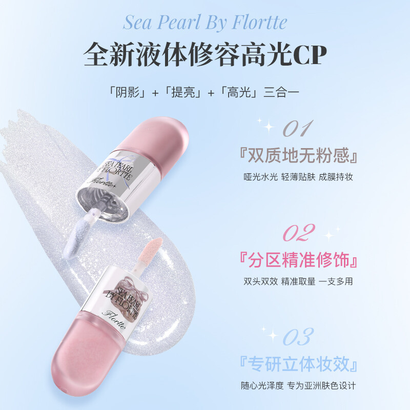 FLORTTE คอนทัวร์ แก้ว ซีรีส์ทะเล สองหัว ไฮไลท์ กระจ่างใส แต่งหน้าอเนกประสงค์ ความแม่นยำ กระจ่างใสธรรมชาติ