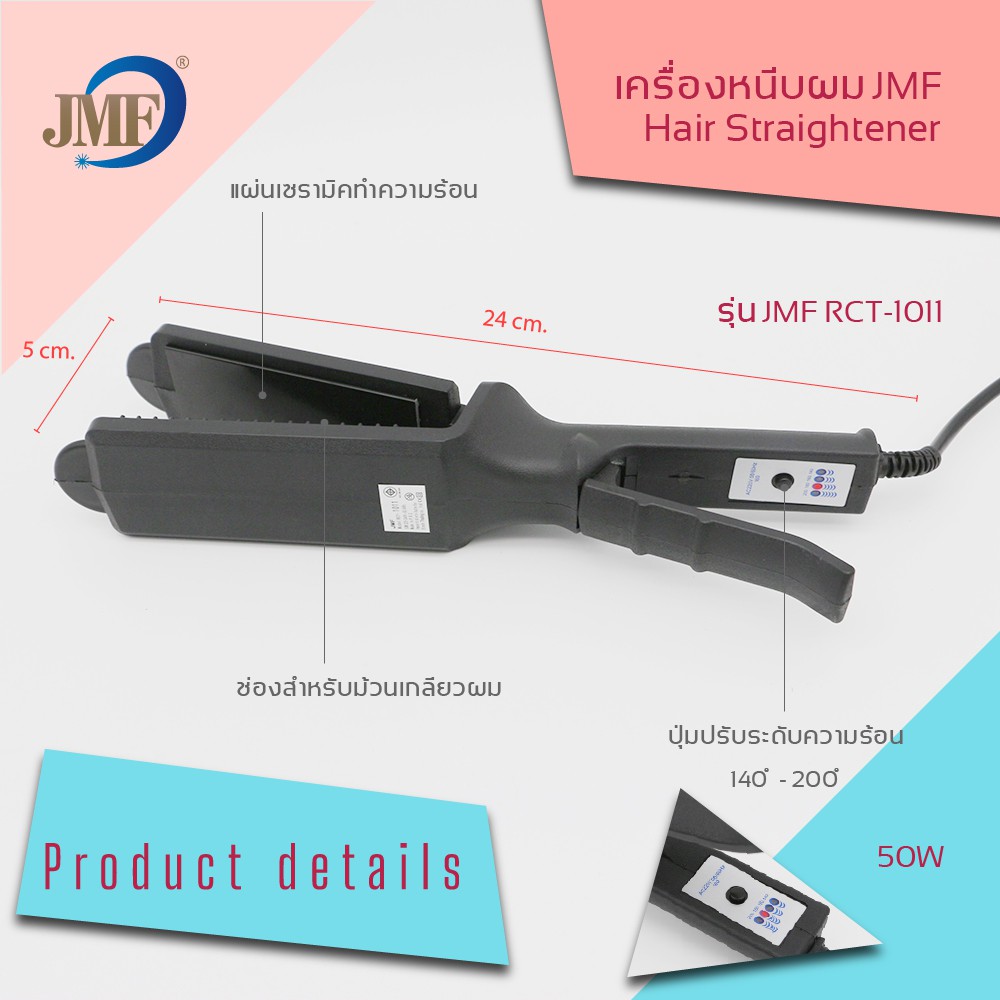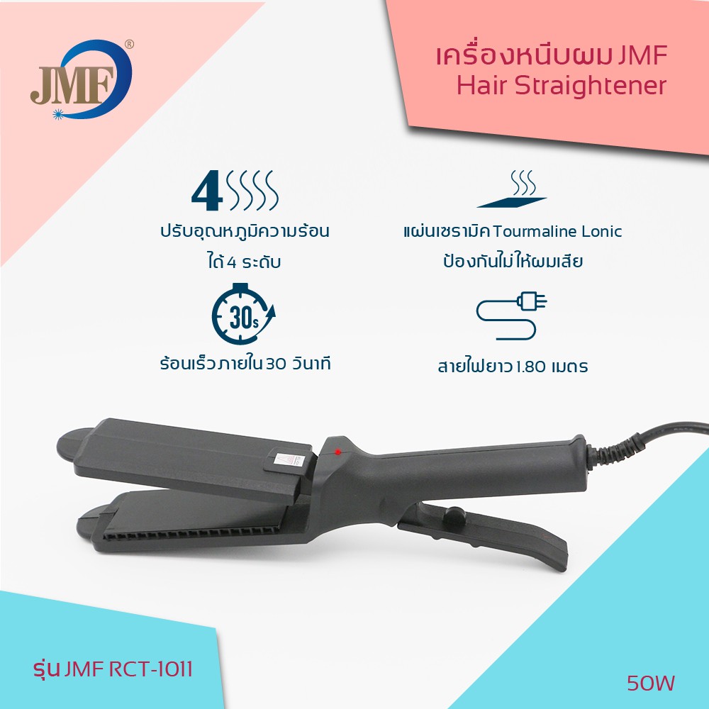 JMF -1011 (ของแท้) ที่หนีบสีดำ เครื่องหนีบผม ยืดตรง งุ้มปลาย ม้วนลอน ที่หนีบผม มีซี่หวี ปรับความร้อน 4 ระดับ ร้อนเร็ว