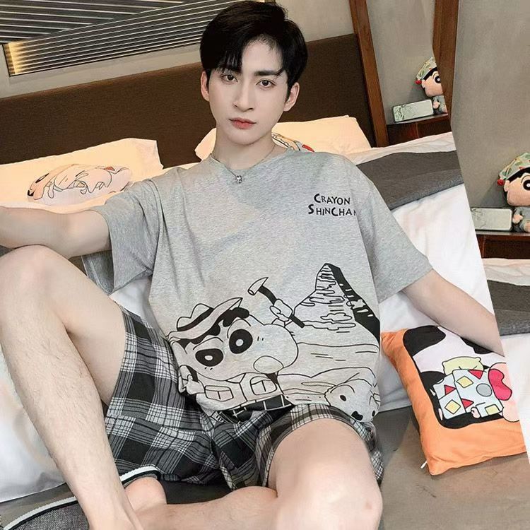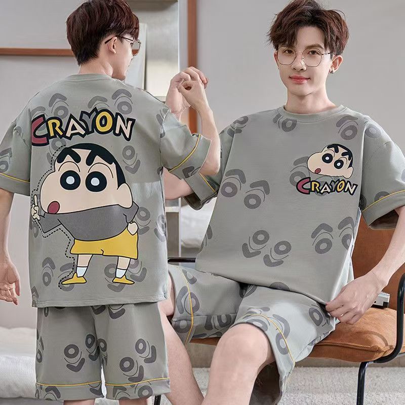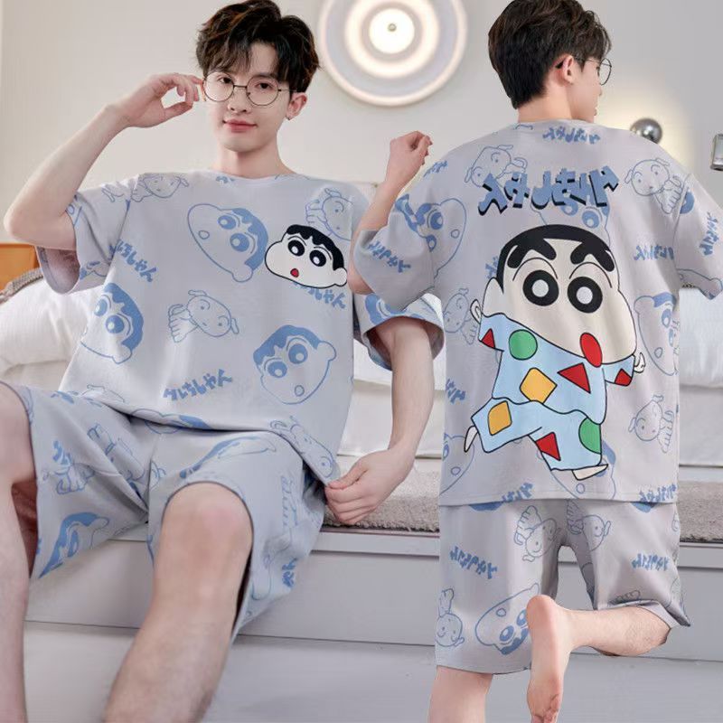 ชุดนอนลายการ์ตูนเครยอนชินจัง ชุดนอนผู้ชาย เนื้อผ้าคอตตอน ชุดลำลองไซส์ใหญ่ ใส่เที่ยวกลางคืนได้