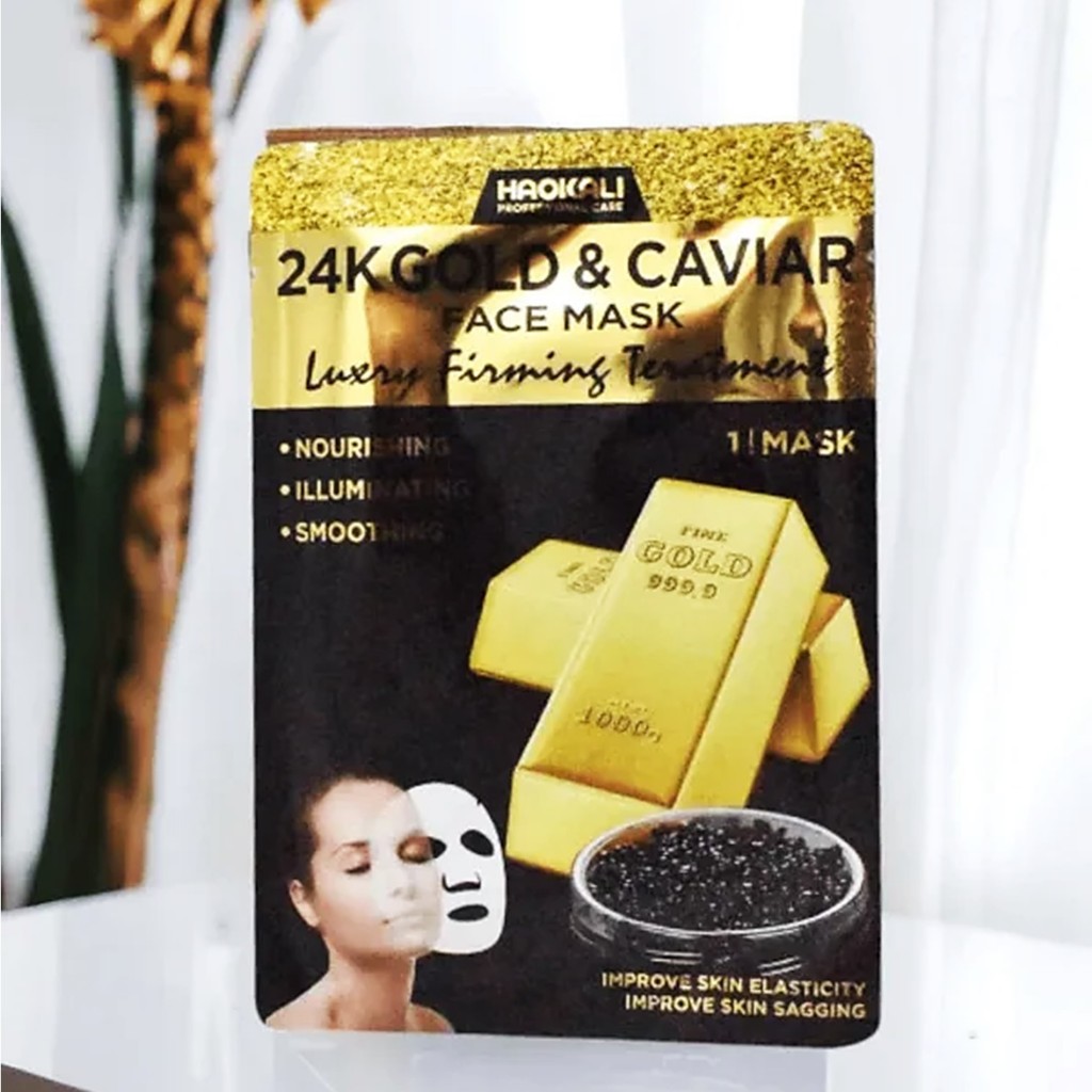 Haokali 24K Gold & Caviar Face Mask Luxury Hydrating Treatment 10sheets แผ่นมาส์คหน้ากระจ่างใสเนียนนุ่ม