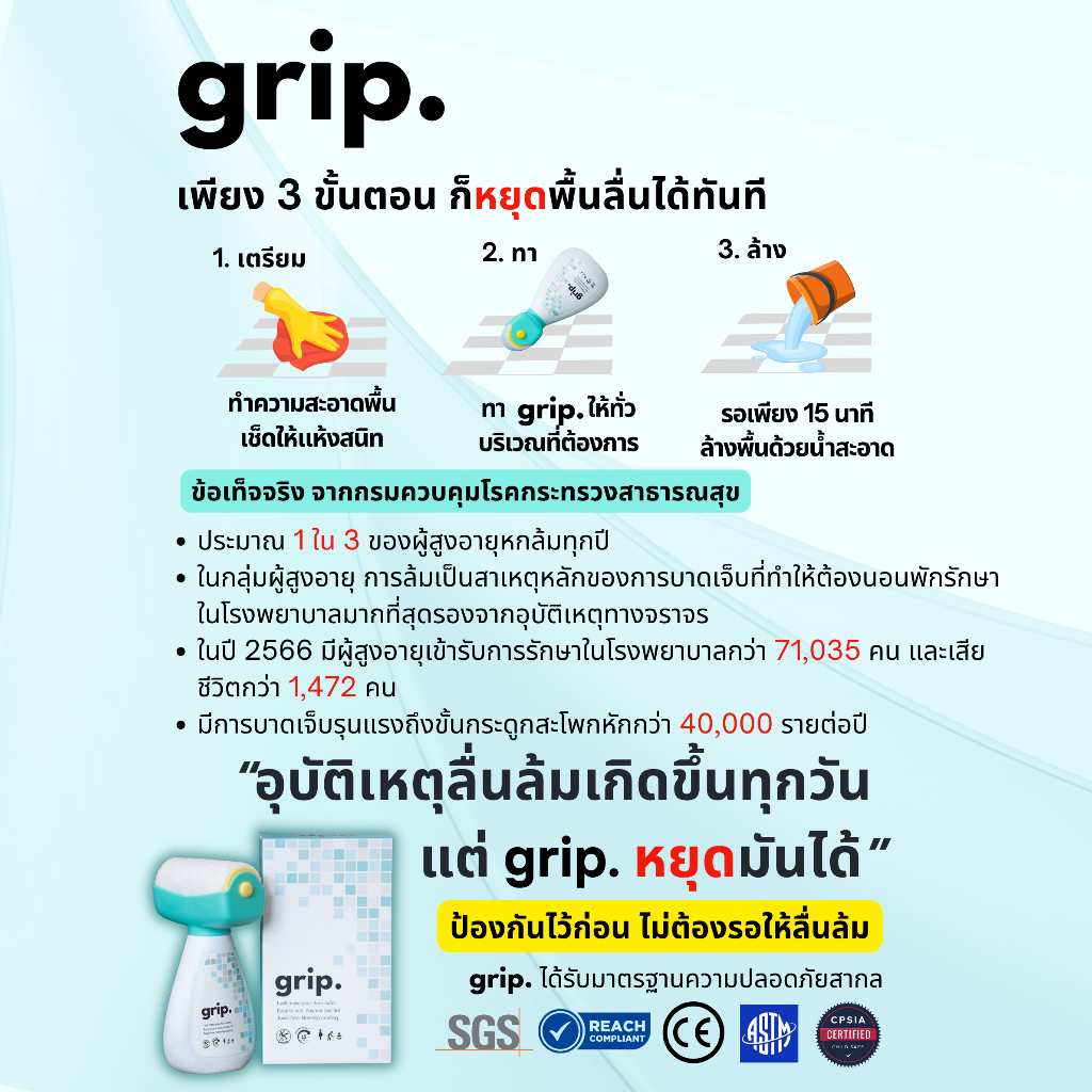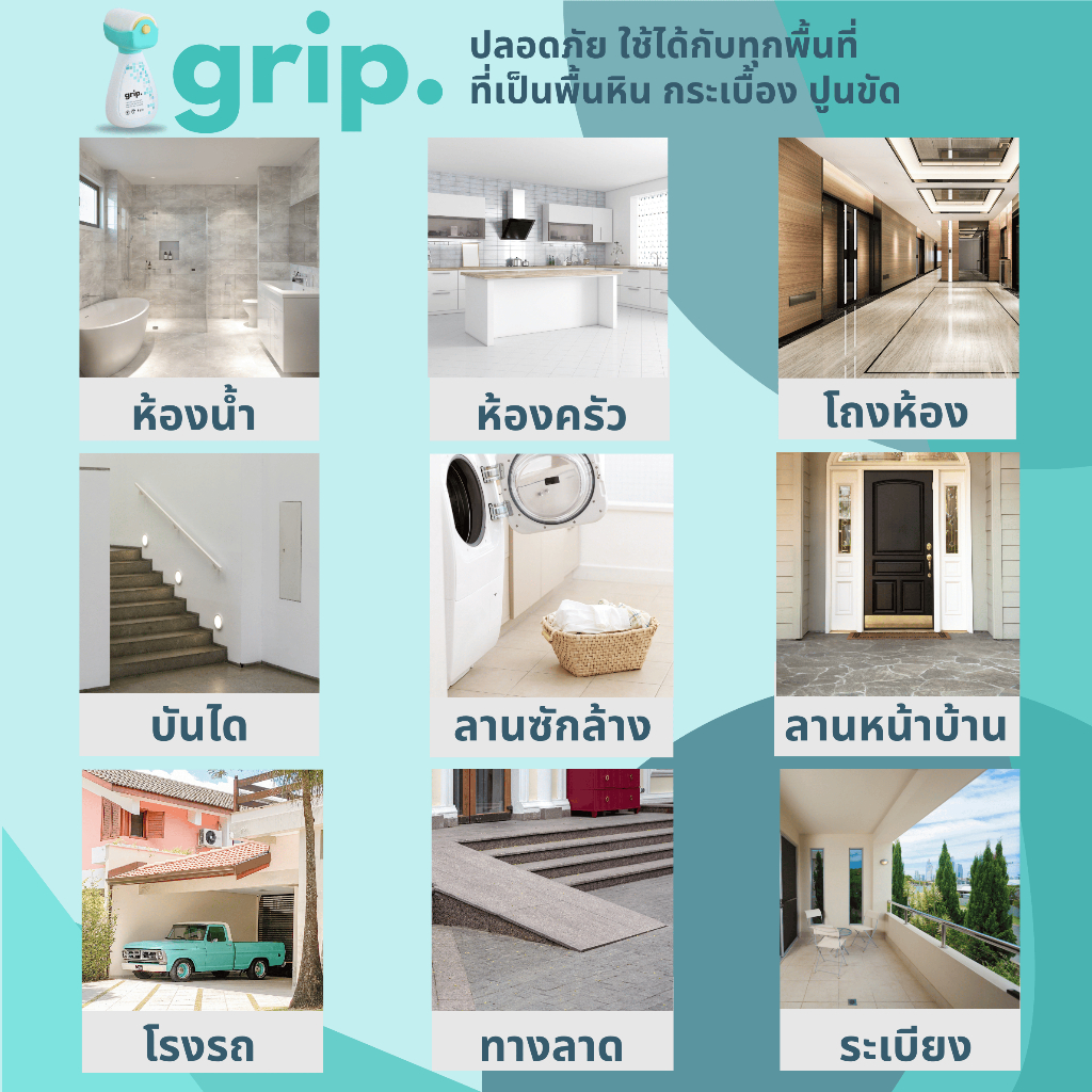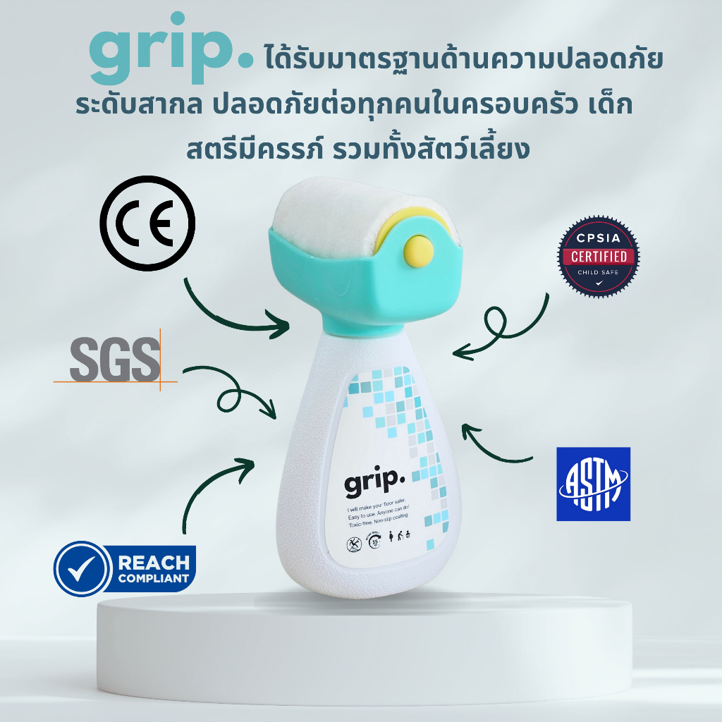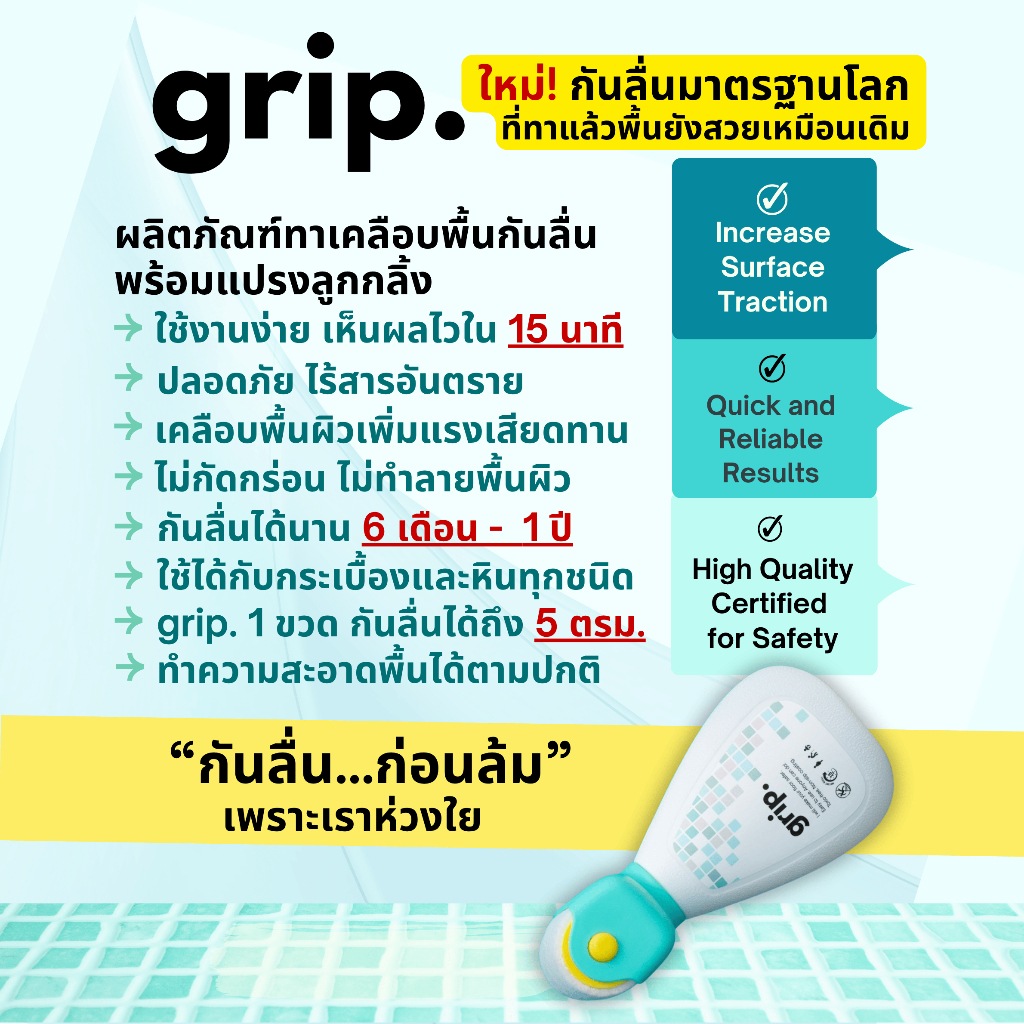 grip. ผลิตภัณฑ์เคลือบพื้นผิวกันลื่น พร้อมลูกกลิ้งสำหรับทาพื้นกระเบื้องและหินทุกชนิด แพคคู่ สุดคุ้ม พร้อมส่งในไทย