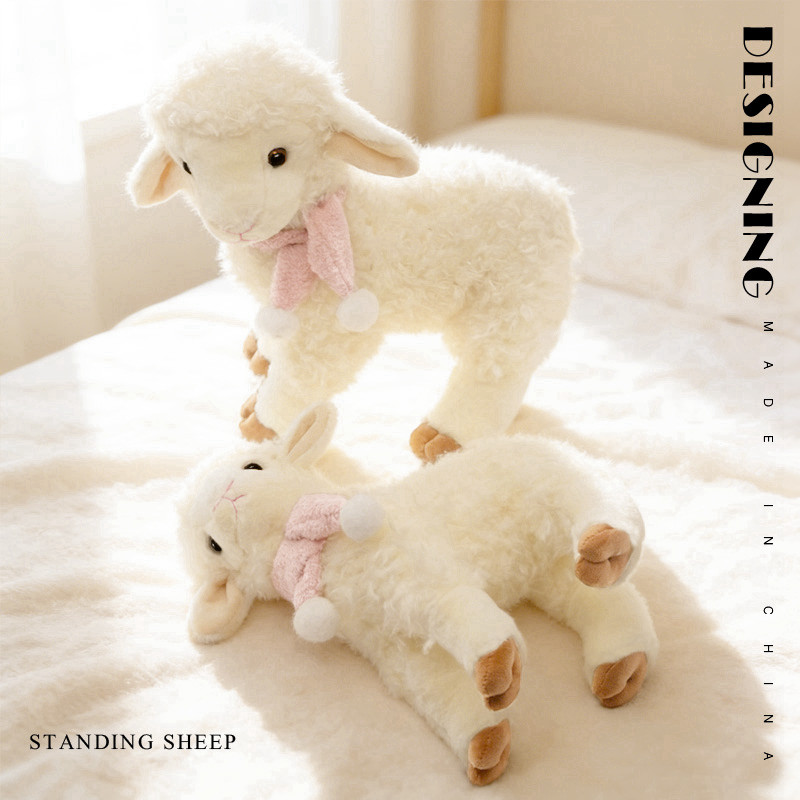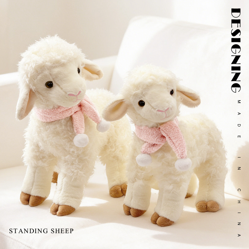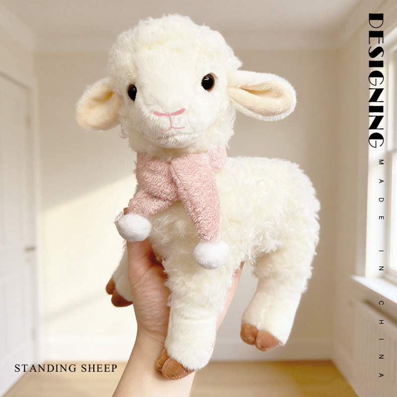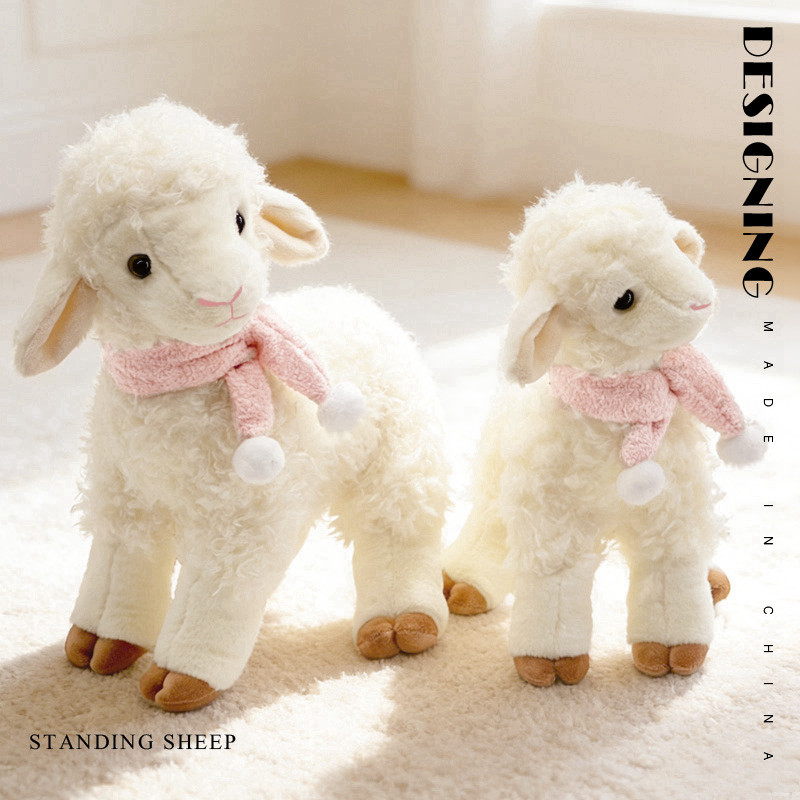 ยืนแกะของเล่นตุ๊กตา 26 ซม. 31 ซม. ผมหยิกนุ่มผ้าพันคอสีชมพู Pompom Comfort Companion Skin Friendly