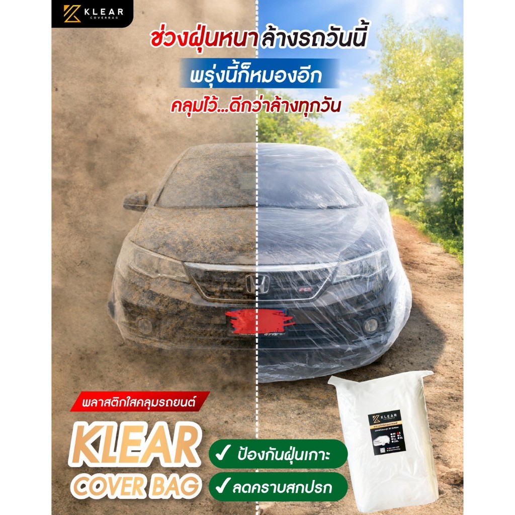 พลาสติกคลุมรถยนต์ Size SS - 2XL เนื้อพลาสติกหนา พิเศษ เหนียว คลุมฝุ่น กันมูลสัตว์ สิ่งสกปรก มียางยืด