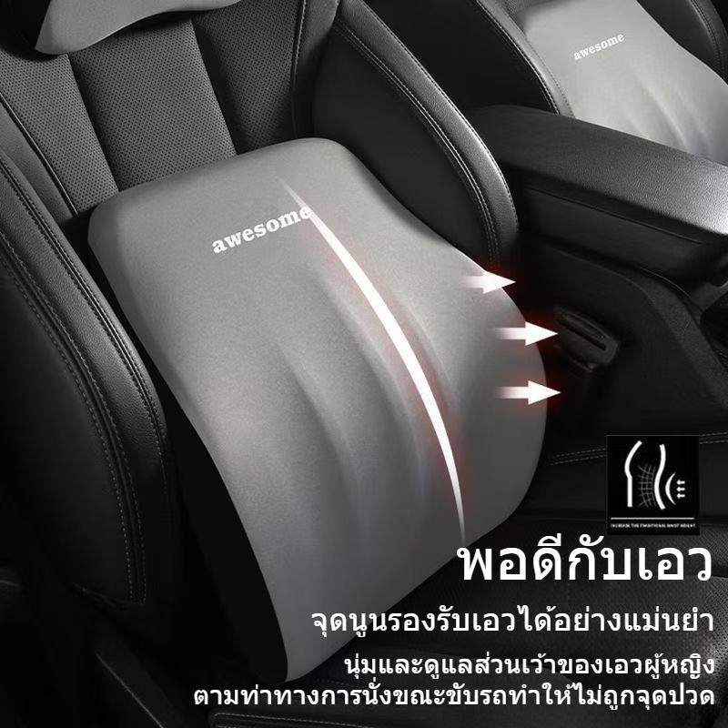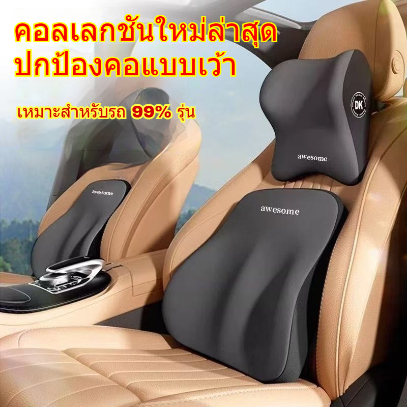 หมอนรองคอ รองไหล่ ที่รองพิง พนักพิงศีรษะ เมมโมรี่โฟม หนังนิ่ม ที่รองพิงหลังสำหรับรถยนต์