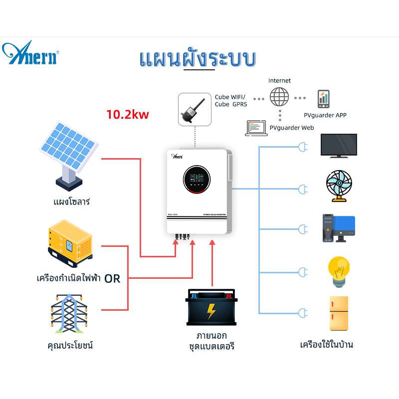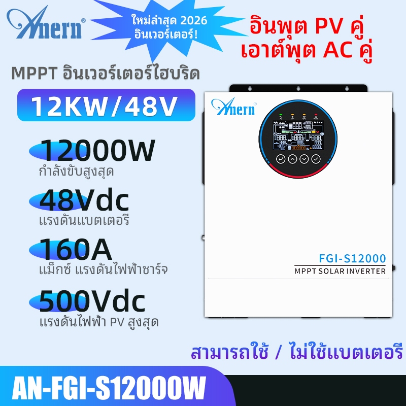 Anern 10.2KW/12KW MPPT Hybrid Inverter 48V Power Inverter 230VAC Solar Inverter 500VDC off grid อินเวอร์เตอร์ทํางานไม่มีแบตเตอรี่