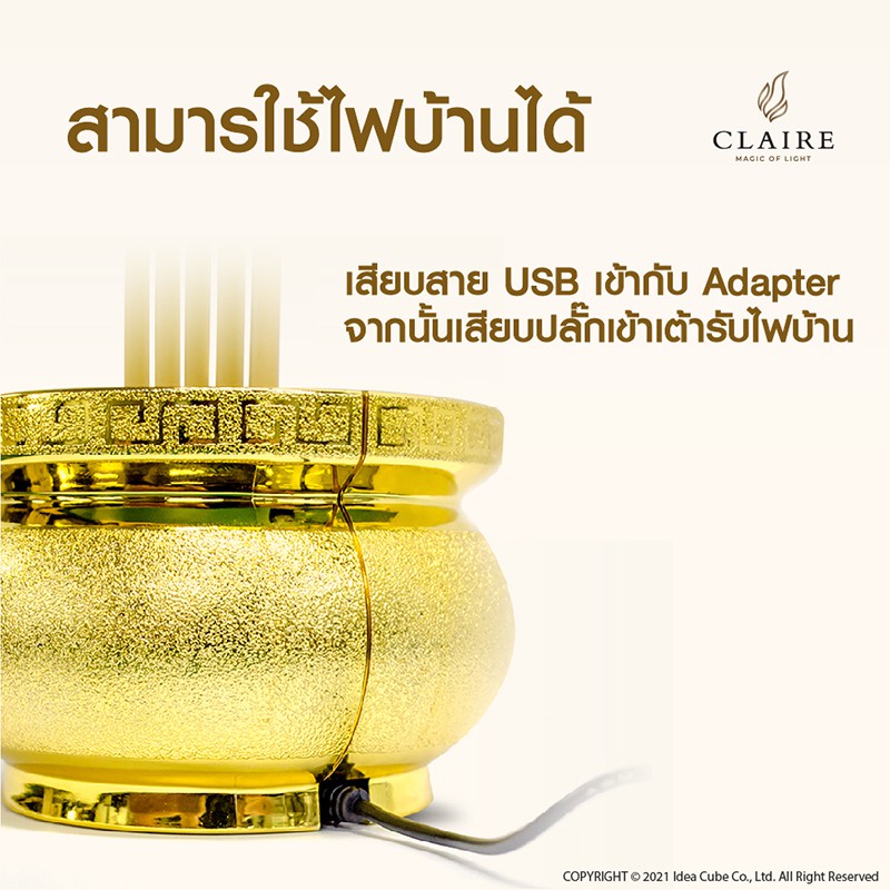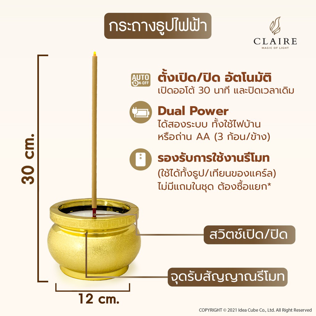 แคร์ล ธูปไฟฟ้า LED สูง30ซม. ใส่ถ่านหรือไฟฟ้า ธูปไฟฟ้า 1 ดอก ตั้วเวลาได้ สีทอง