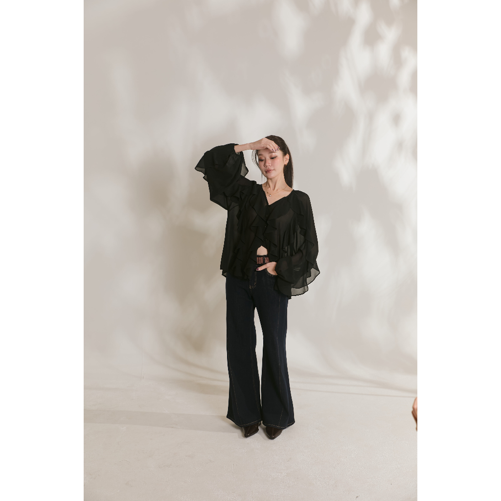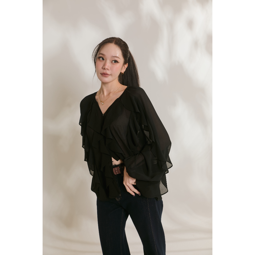 [Diana Top] ดีเทลระบายน่ารักมาก ความเป็นคอวียิ่งเสริมลุคให้ดูผอมเพรียวที่สุด ผ้าชีฟองเนื้อปานกลาง ใส่สบายเทสดีสุดๆ