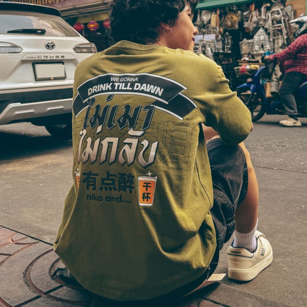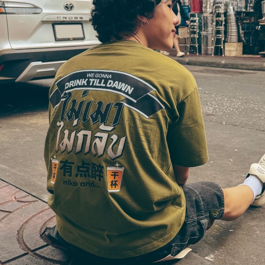 niko and ... [YOUNG HENG (ยังเฮง) Collection] เสื้อยืดDrink Till Dawn(ไม่เมาไม่กลับ) T-Shirt (Green)