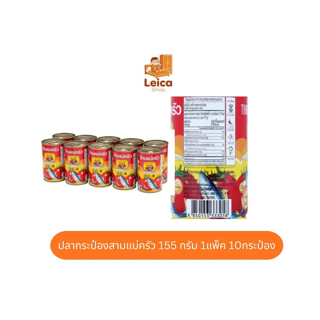 สามแม่ครัว ปลาซาร์ดีนในซอสมะเขือเทศ 155 ก. x 10กระป๋อง