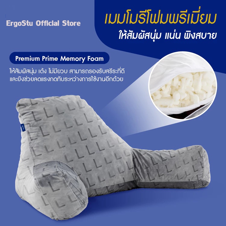 ErgoStu หมอน หมอนพิงหลัง หมอนรองหลัง มีที่วางแขน ทำจากเมมโมรี่โฟม สัมผัสนุ่มม แต่ไม่ยวบบ กันกรดไหลย้อน Embrace Pillow