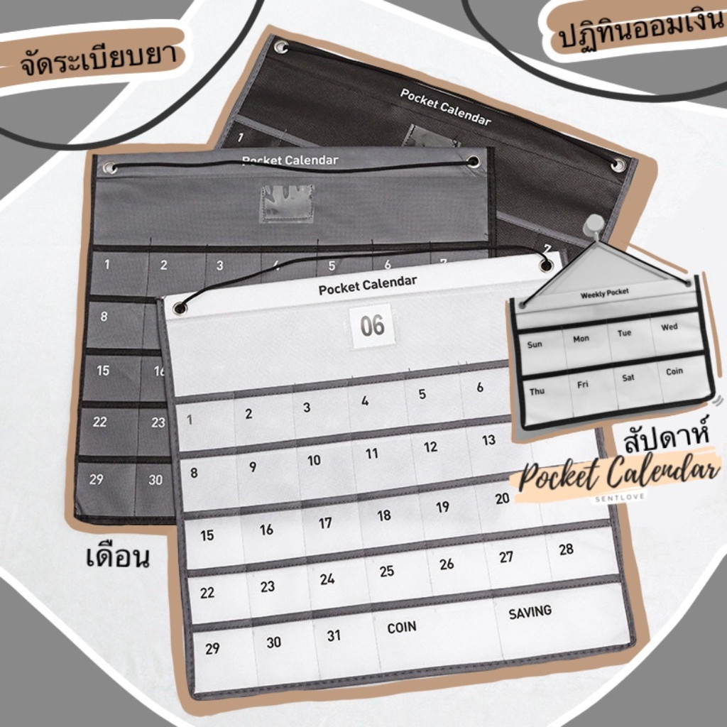 ปฏิทินออมเงิน ปฎิทินออมเงิน รายเดือน ติดผนัง วัสดุผ้าใบ สามารถจัดเก็บสินค้าได้ ใส่ได้ทั้งเหรียญแบงค์และกระดาษโน้ต
