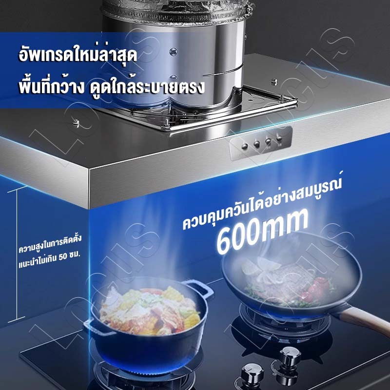 เครื่องดูดควัน 120W 12นิ้ว เวอร์ชันปุ่ม LED พัดลมดูดควันน้ำมัน สแตนเลส พัดลมระบายอากาศครัว ลมแรง Range Hoods