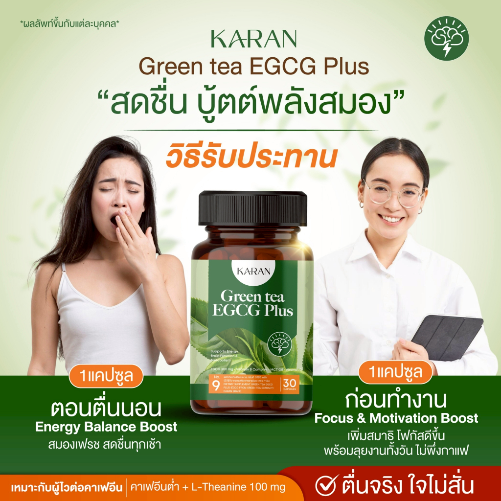 Karan Greentea EGCG 280mg+ Bรวม+L-Theanine สดชื่นทันที โฟกัสดี บำรุงสมอง ใจไม่สั่น (แทนกาแฟ) 30เม็ด